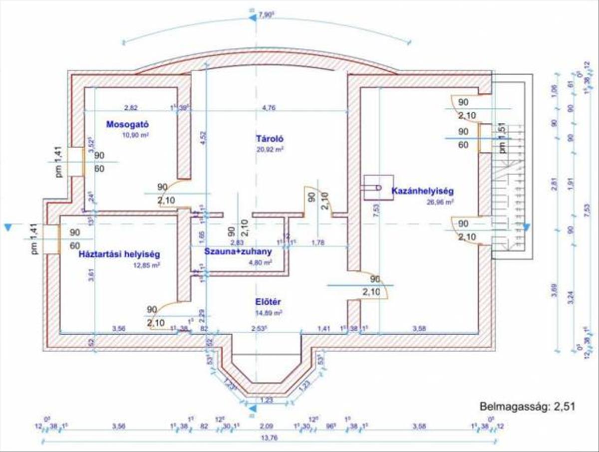 Az alsó, 91 nm -es szuterén szinten található a kazánhelyiség, egy háztartási helyiség, két tároló és egy szauna helyiség.
