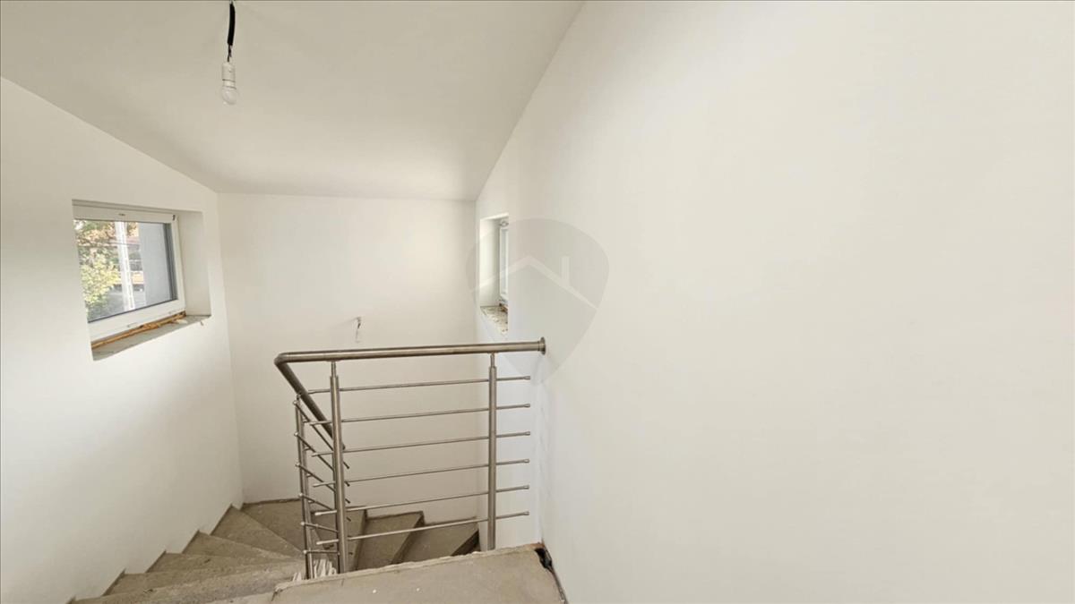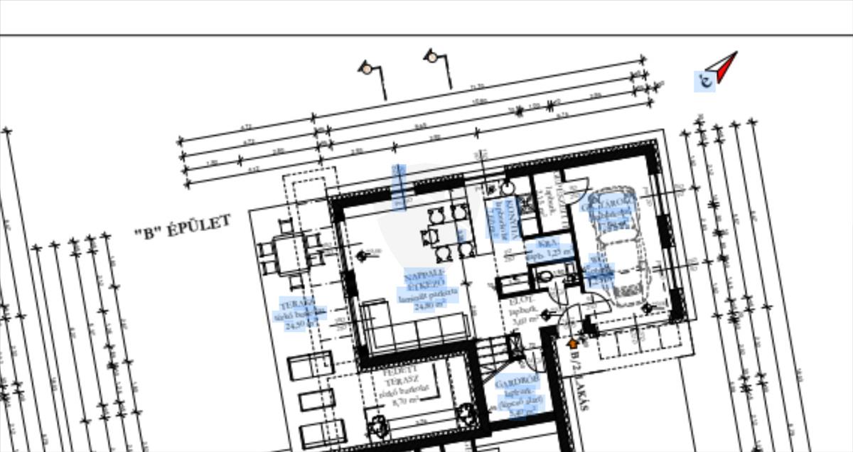 Az ingatlan két azonos elrendezésű lakásból áll, így teljesen privát, mégis közösségi élményt nyújtó lakókörnyezetet biztosít. Az alsó szinten tágas előtérből nyílik a vendég mosdó és a garázs, amely közvetlen összeköttetéssel rendelkezik a gépészeti helyiséggel. Az előtérből az impozáns nappali-étkező-konyha térbe lépünk, amelyhez egy praktikus kamra is tartozik. Innen közvetlen kijárat vezet az ingatlan egyik ékkövére, a napfényes, 33 m²-es teraszra. Az emeleti szint három hálószobát kínál, egy tágas gardróbszobával, illetve két fürdőszobával (egy zuhanyzós és egy fürdőkádas).