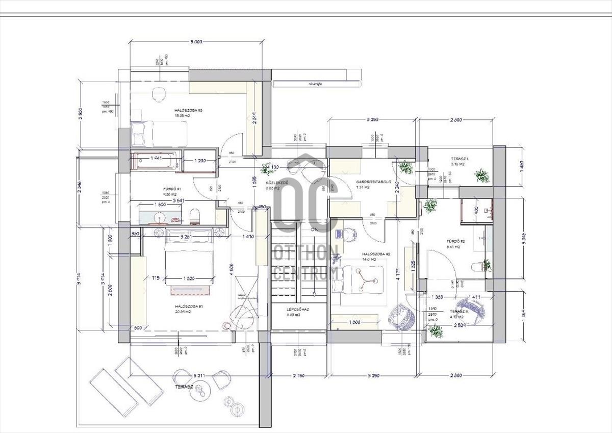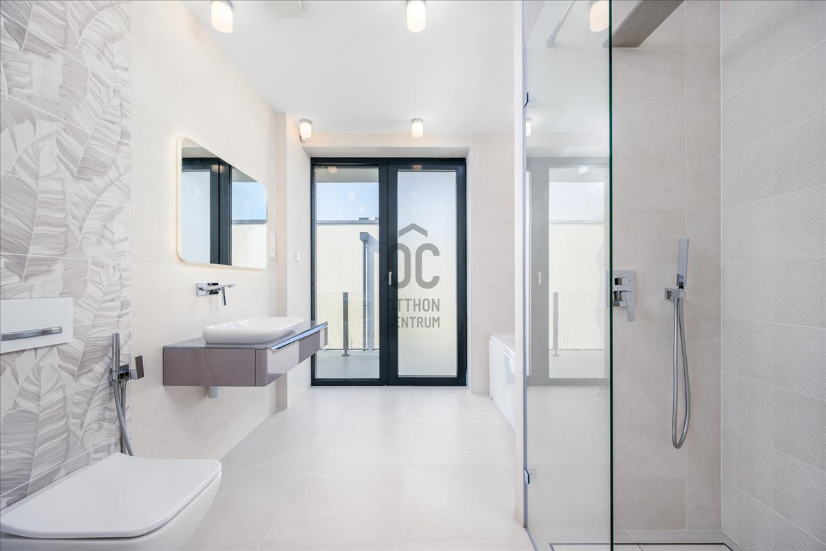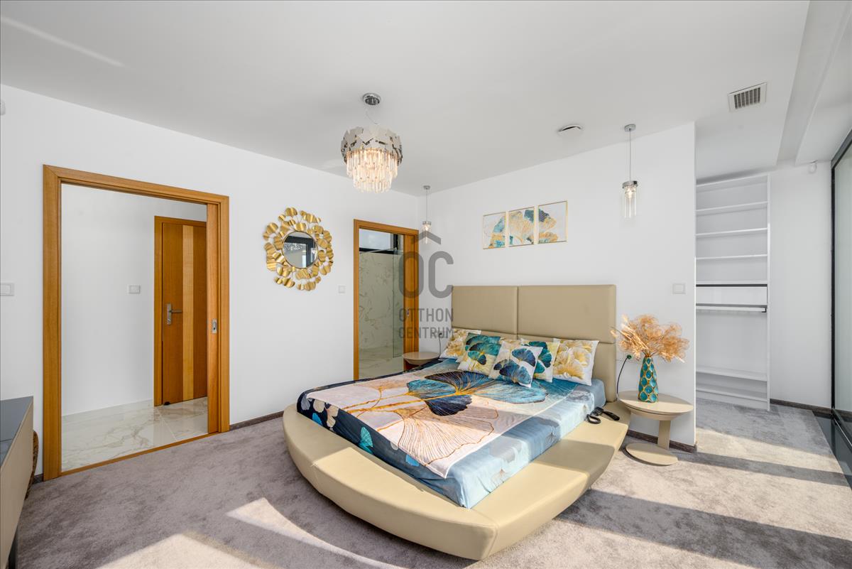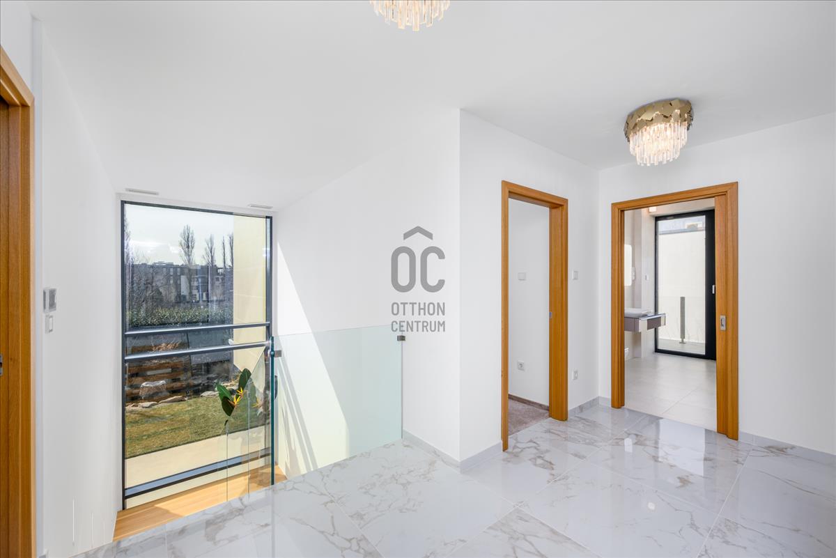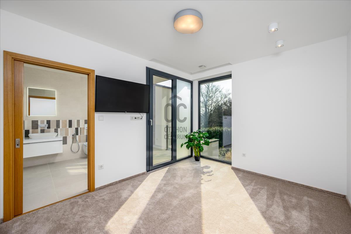 Az emeleten három kényelmes méretű hálószoba, gardrób és két fürdőszoba található, amelyekhez erkélyek kapcsolódnak. a földszinten külön szülői lakrész biztosítja az intim, nyugodt privát teret saját gardróbbal és fürdőszobával.