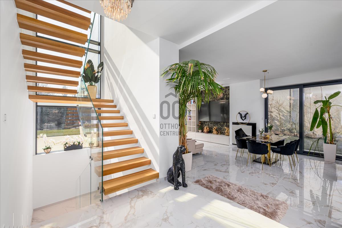 A kb. 800 M²-es telken álló, háromszintes villa közel 300 m² lakóterülettel, 60 m² terasszal és 42 m² erkéllyel rendelkezik. a ház terei nagyvonalúan megtervezettek, világosak és elegánsak, a belső kialakítás során pedig minden részletnél a minőség és az időtálló design volt a meghatározó.