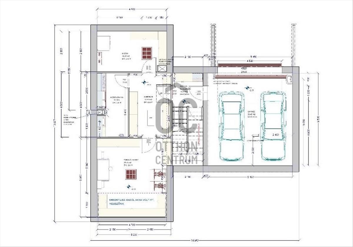 A garázsszinten kétállásos, fűtött garázs kapott helyet elektromos autó töltési lehetőséggel, valamint tároló, mosókonyha, gépészeti helyiség és egy hobby szoba is kialakításra került.