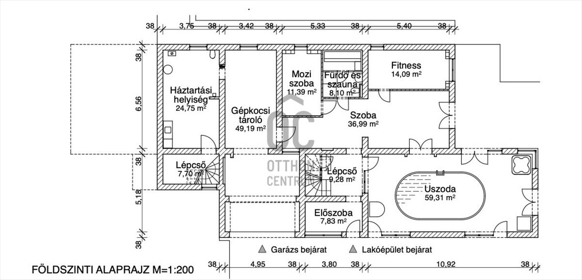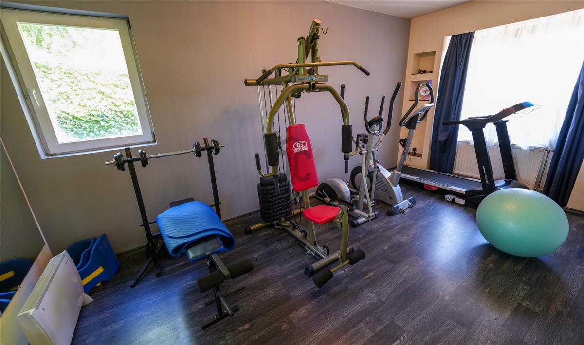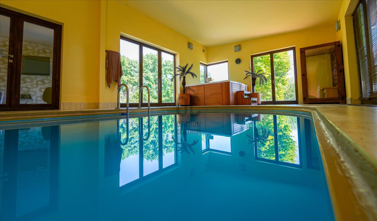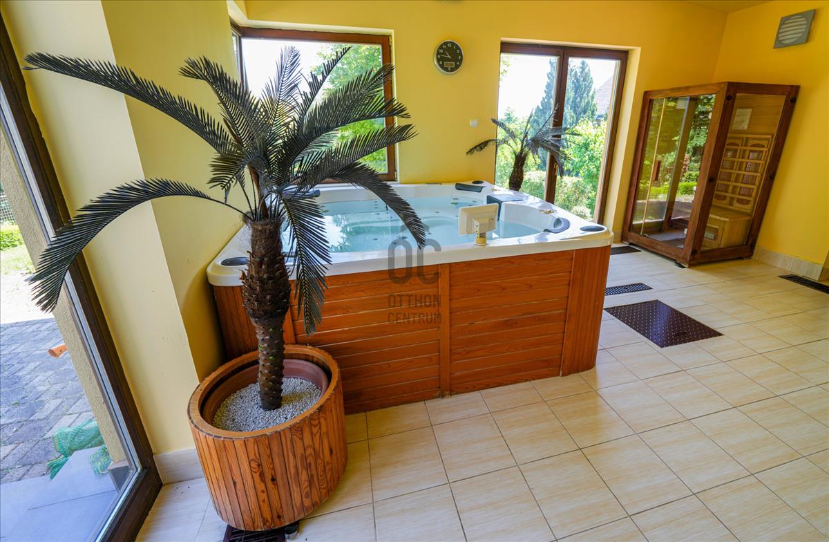 Itt található még a wellness részleg is. a fűtött medencén kívül, infra - és finn szauna mellet egy álló szolárium és egy Jacuzzi is található. a medencetér mind a nappalival mind az ezen a szinten található kerti terasszal is összeköttetésben van.
