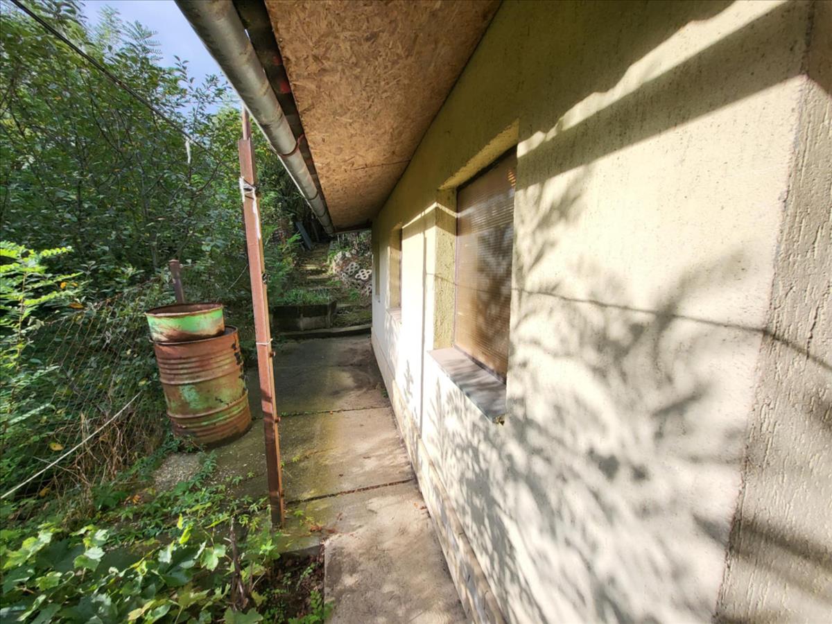A rajta lévő hőszigetelt, de felújítandó állapotú, könnyűszerkezetes ház mérete 57 m2.