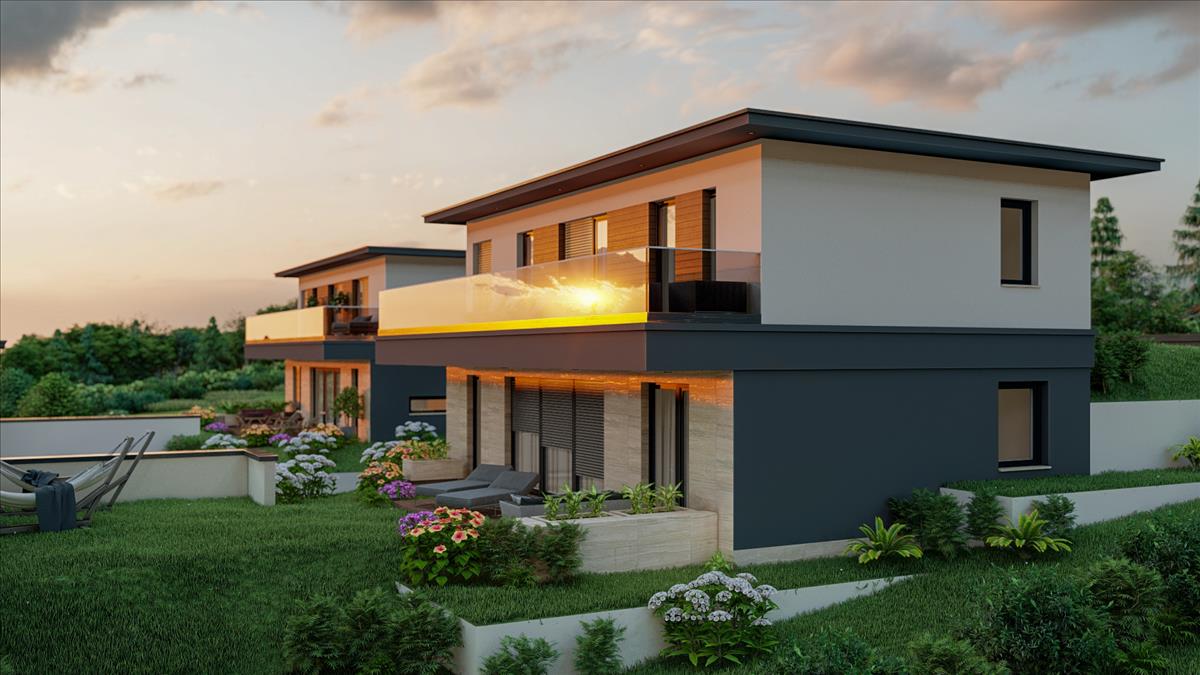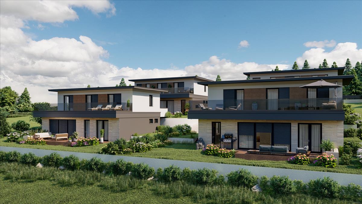 A villák kb. 150-165 M²-es lakótérrel és önálló dupla garázzsal rendelkeznek. Az alaprajzok átgondoltak, jól használhatók, és igény szerint személyre szabhatók. Minden szinten tágas terasz kerül kialakításra, a lenyűgöző kilátást biztosító tetőterasz pedig opcionálisan választható.