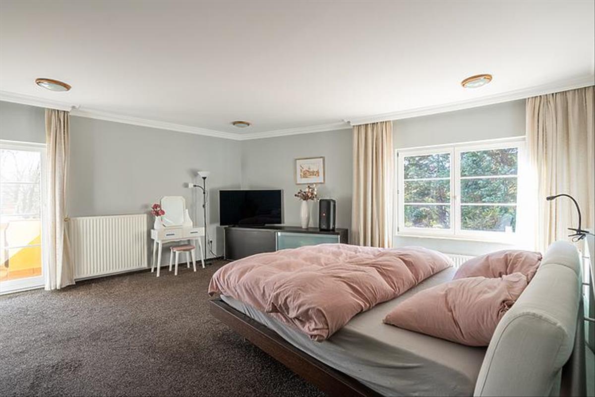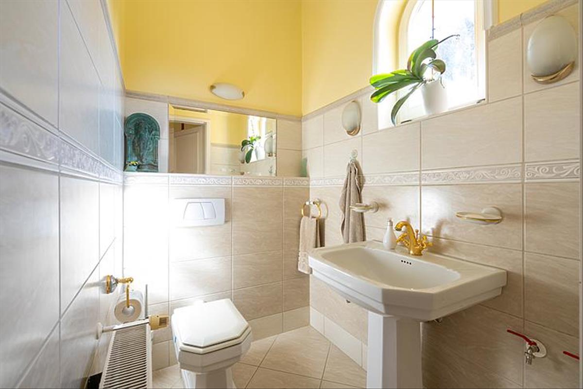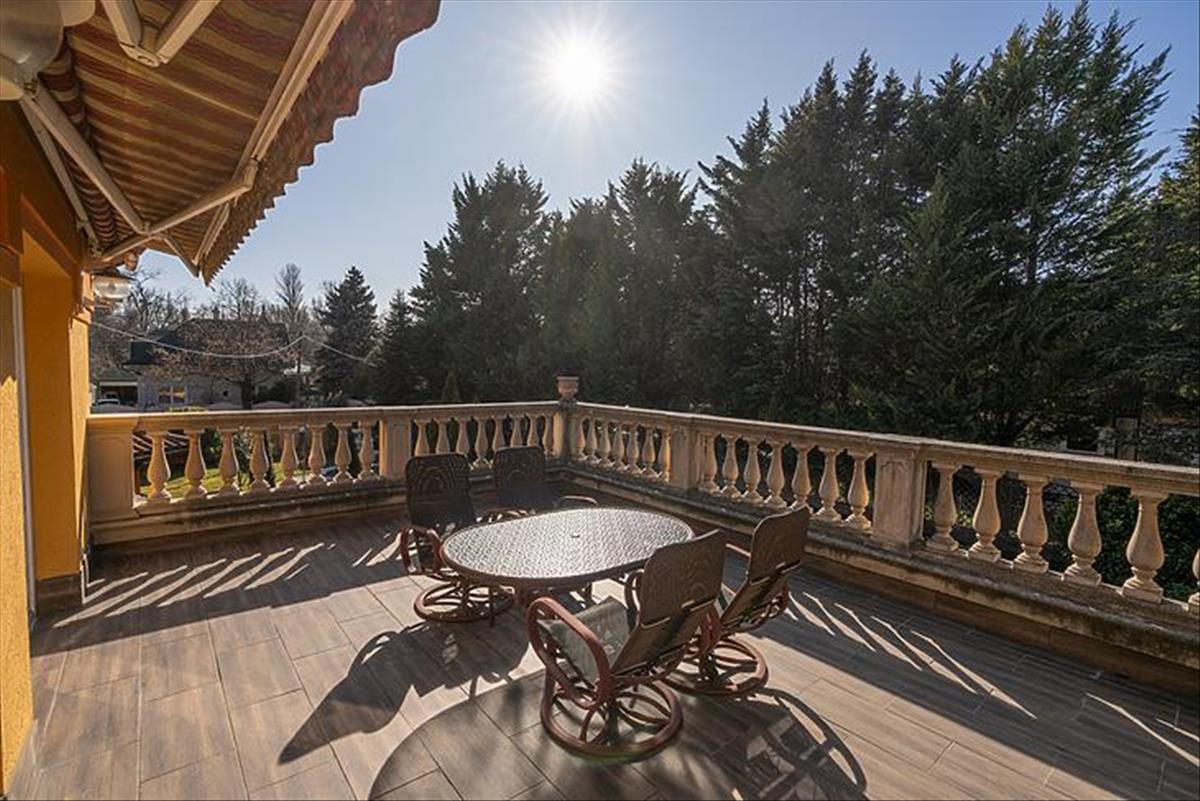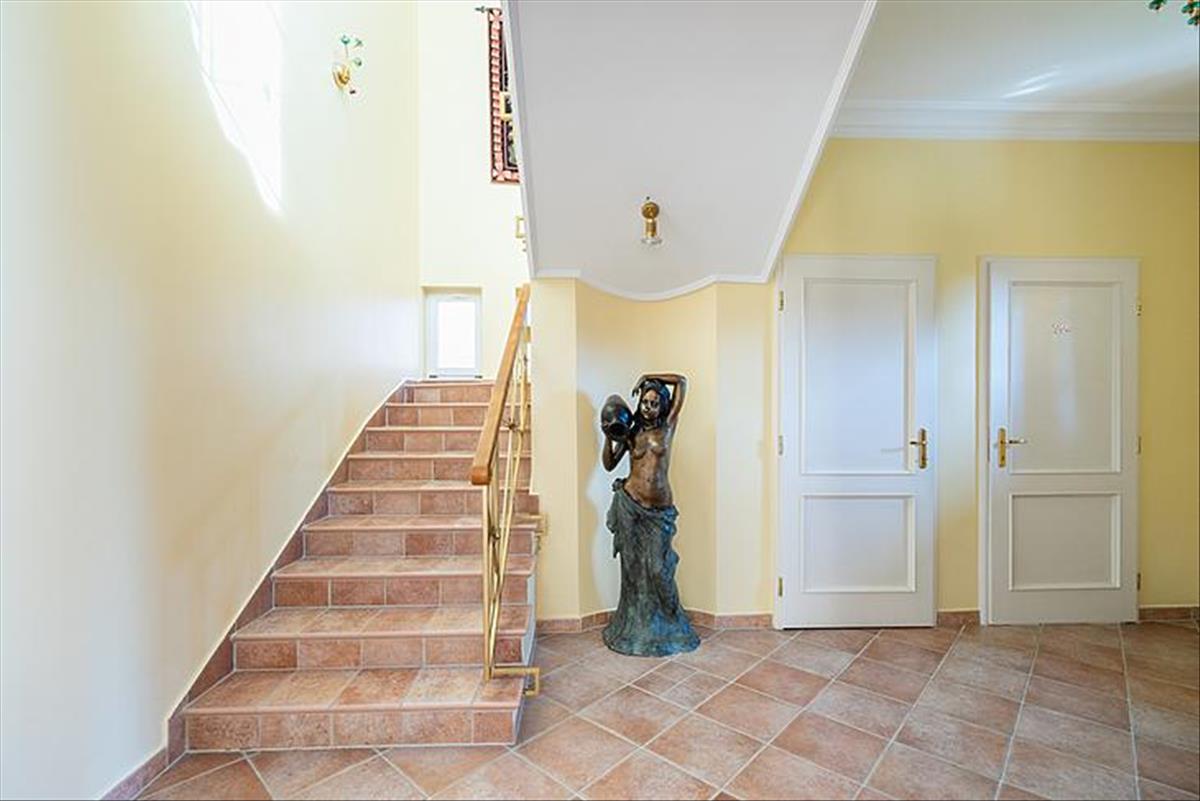 A tágas belső terek 3 méteres belmagassággal rendelkeznek, az ingatlan összesen 8 szobával, 3 fürdőszobával és egy vendég WC-vel szolgálja a család kényelmét. Az alsó szinten egy nagy terasz, míg az emeleten két további terasz biztosít kellemes pihenőhelyet. a konyha prémium aeg készülékekkel felszerelt, a főzéshez indukciós főzőlap és kivezetett szagelszívó áll rendelkezésre.