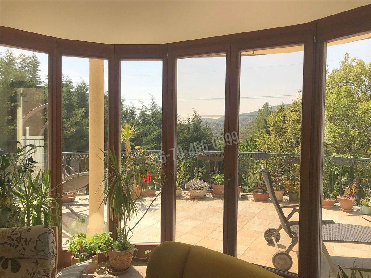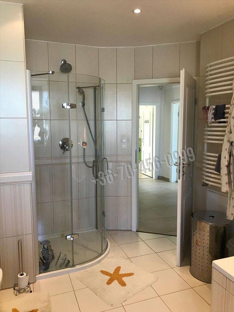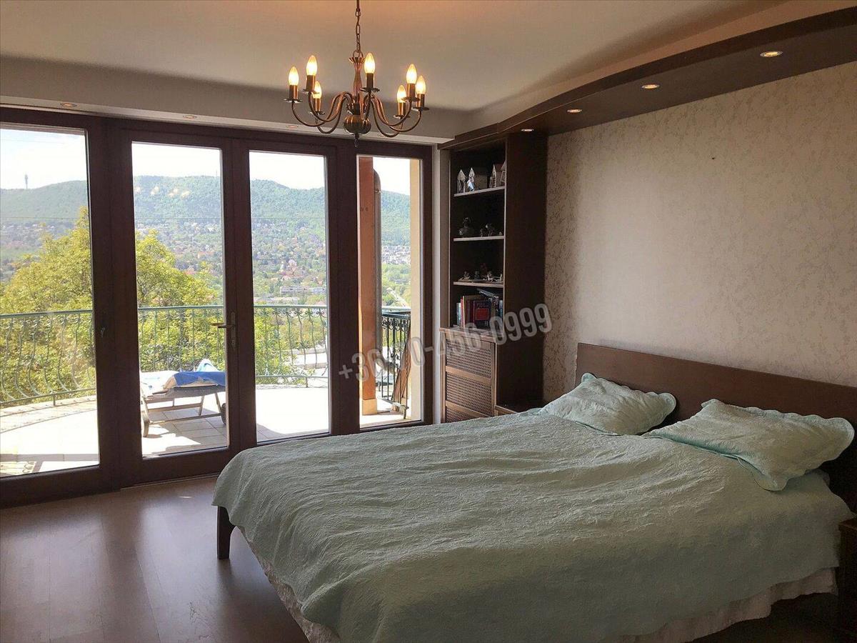 A szerkezetileg kitűnően megépített ingatlan nappali szintjéhez hatalmas teraszok kapcsolódnak, a ~80 nm-es nappali-konyha-étkező együtteséből közvetlenül is, ill. a hozzá kapcsolódó ~50 nm-es teraszról is élvezhetjük a zavartalan panorámát. a hátsó, ~100 nm-es terasz a gyümölcsfákkal beültetett, gyepesített, hangulatos kertben folytatódik. Ezen a szinten találunk még két kényelmes hálószobát, zuhanyzóval felszerelt fürdőszobát és vendégmosdót is. a kényelmes, - impozáns kovácsoltvas korláttal ellátott, az ablakoknak köszönhetően világos - belső lépcsőházban juthatunk fel a három hálószoba szintjére, itt a minden igényt kielégítő fürdőszoba mellett az intim fekvésű, panorámás terasszal bíró szülői hálószobából külön járható gardrób is a lakók kényelmét szolgálja. a rendkívül tágas két lakószintet kiegészíti a beépített, teljes értékű, klimatizált manzárd szoba, ami tökéletes lehetőség lehet az elvonulásra, kikapcsolódásra.