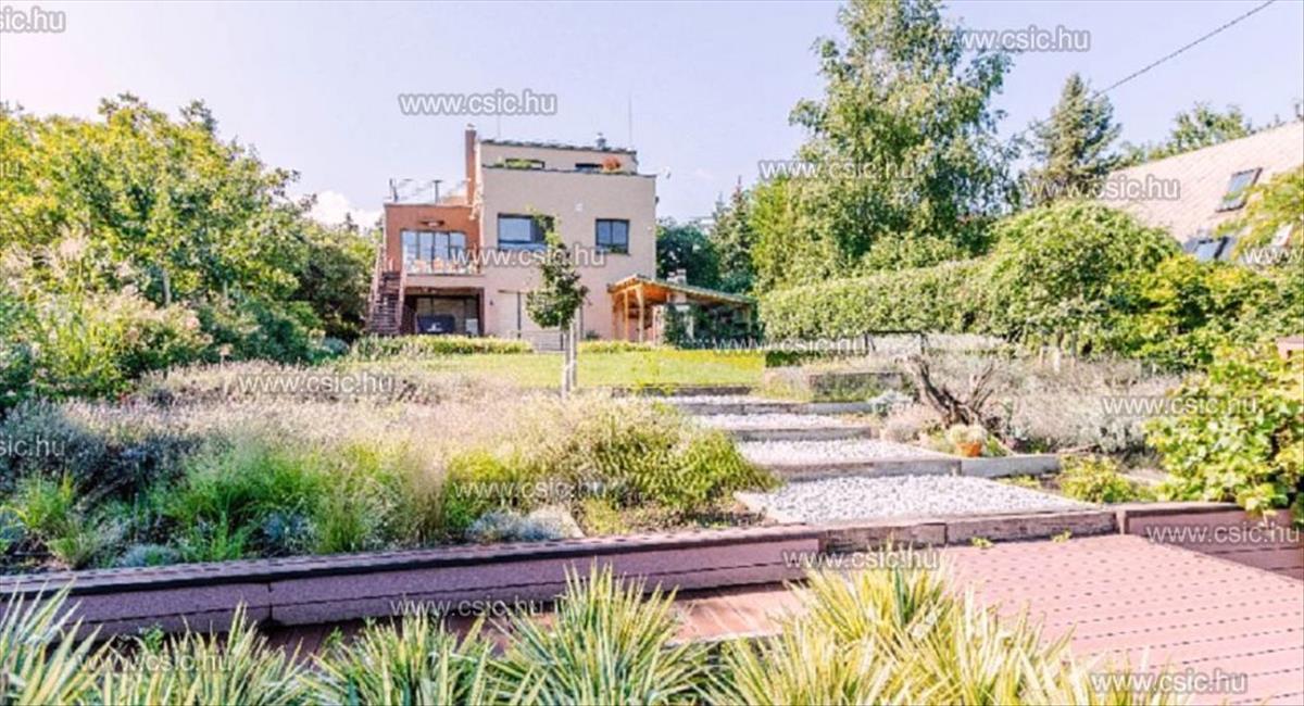 Örök panorámás passzívház Aranyhegyen!Budapest III. kerületében, Aranyhegy csendes, zöldövezeti részén eladó egy 2013-ban épült 370 m²-es, háromszintes passzív családi ház, amely egy 1200 m²-es, parkosított telken helyezkedik el, örök panorámával a természetvédelmi területre. a tágas teraszok, tetőkertek és a lenyűgöző kilátású kert tökéletes harmóniát teremtenek kényelem, természet és modern technológia között.