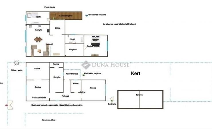 - a ház alsó szintje felújítandó, felső szintje jó általános állapotú.