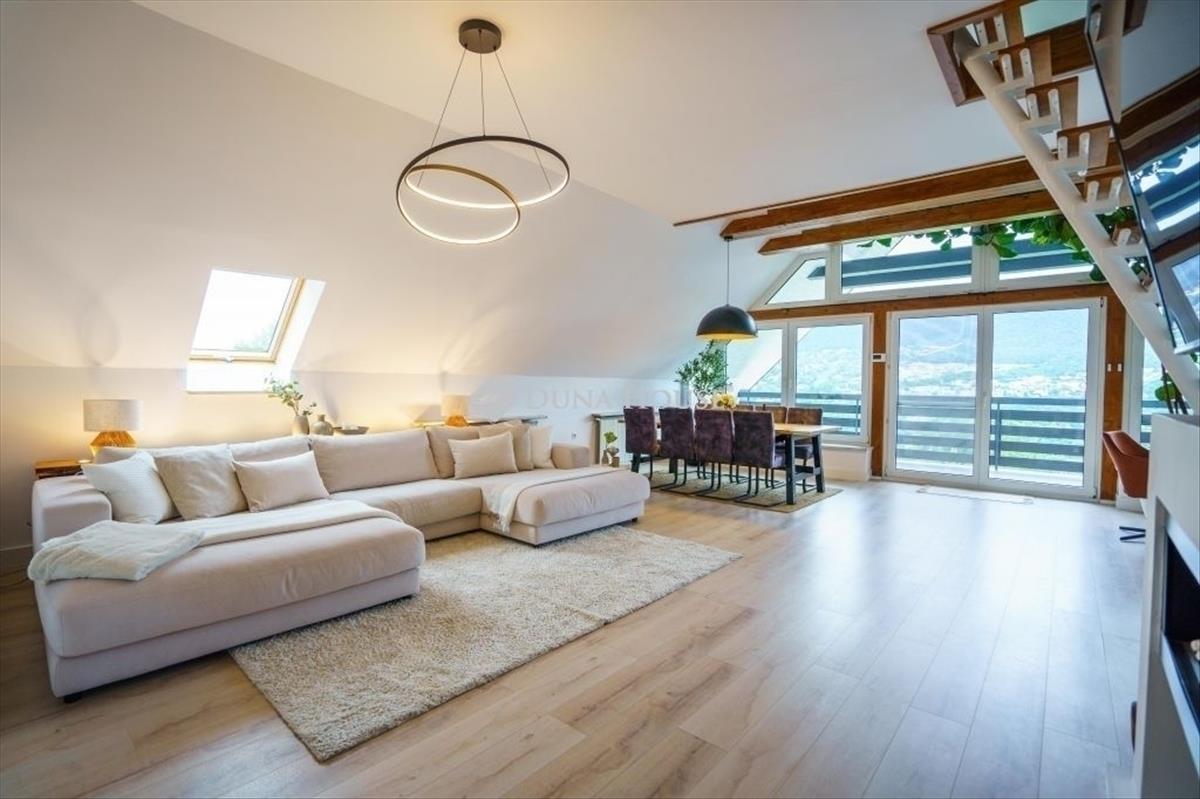 A ház minden részletében a kényelem és az elegancia találkozik. Az alsó szinten található amerikai konyhás nappali tágas, 46 m²-es terével és hatalmas ablakain keresztül lenyűgöző kilátást nyújt a Testvérhegyre. Innen léphetünk ki a 35 m²-es teraszra, ahol a reggeli kávézás és az esti naplemente alatt is gyönyörködhet a tájban.
