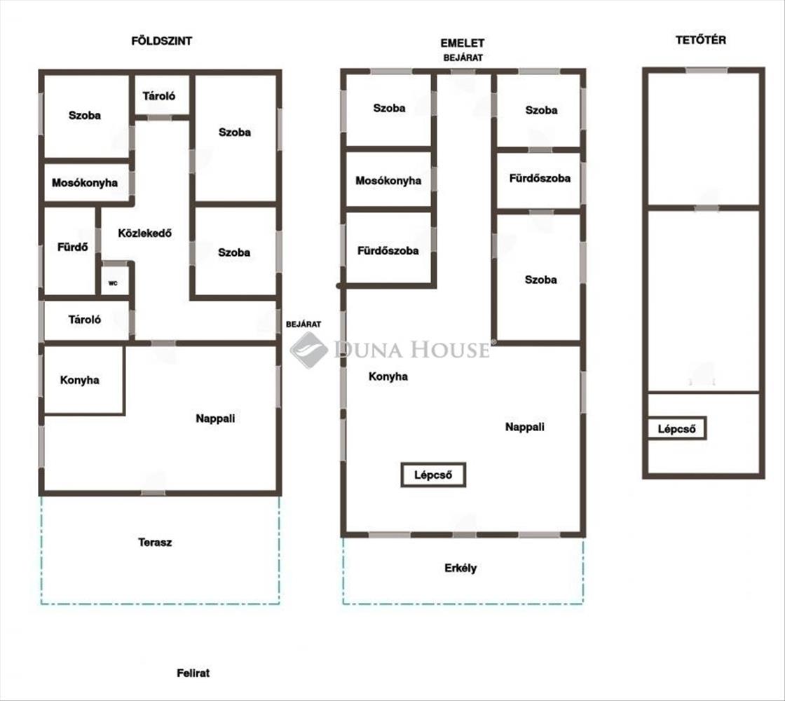 Az ingatlan két különálló lakrészre osztható, mindkettő saját bejárattal, nappalival, hálószobákkal, fürdőszobákkal és mosókonyhával rendelkezik. Ez az elrendezés tökéletes megoldás két generáció számára, vagy akár lakó- és munkatér kombinációjára. a földszinten és az emeleten összesen hat szoba biztosítja, hogy minden családtagnak legyen egy saját kis szigete.