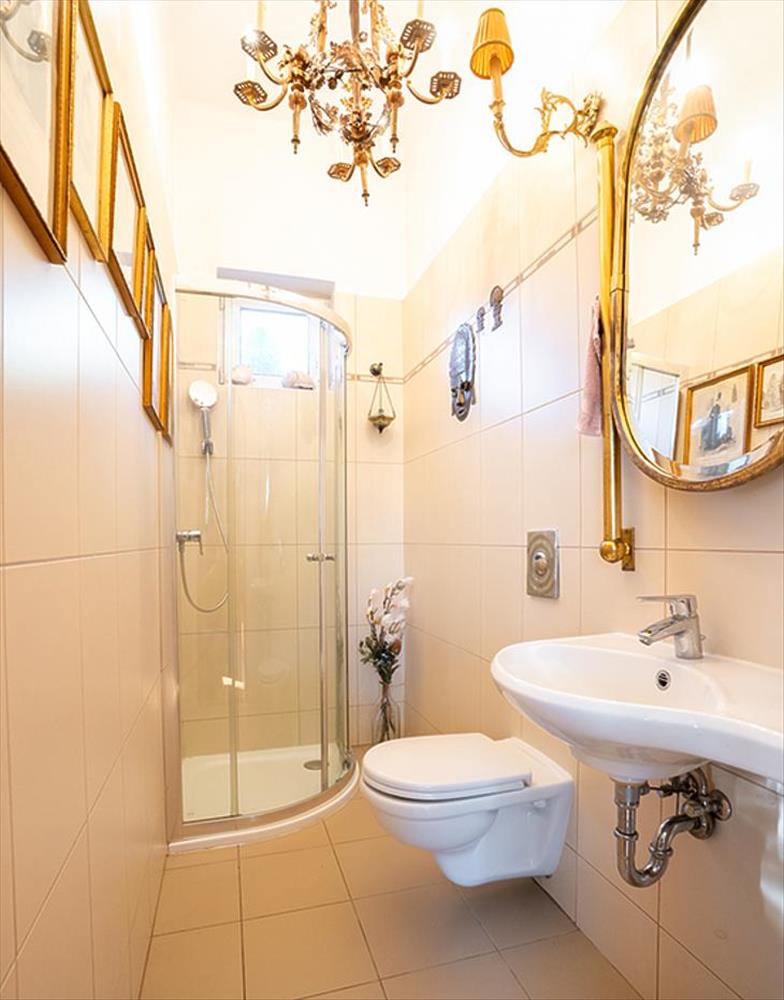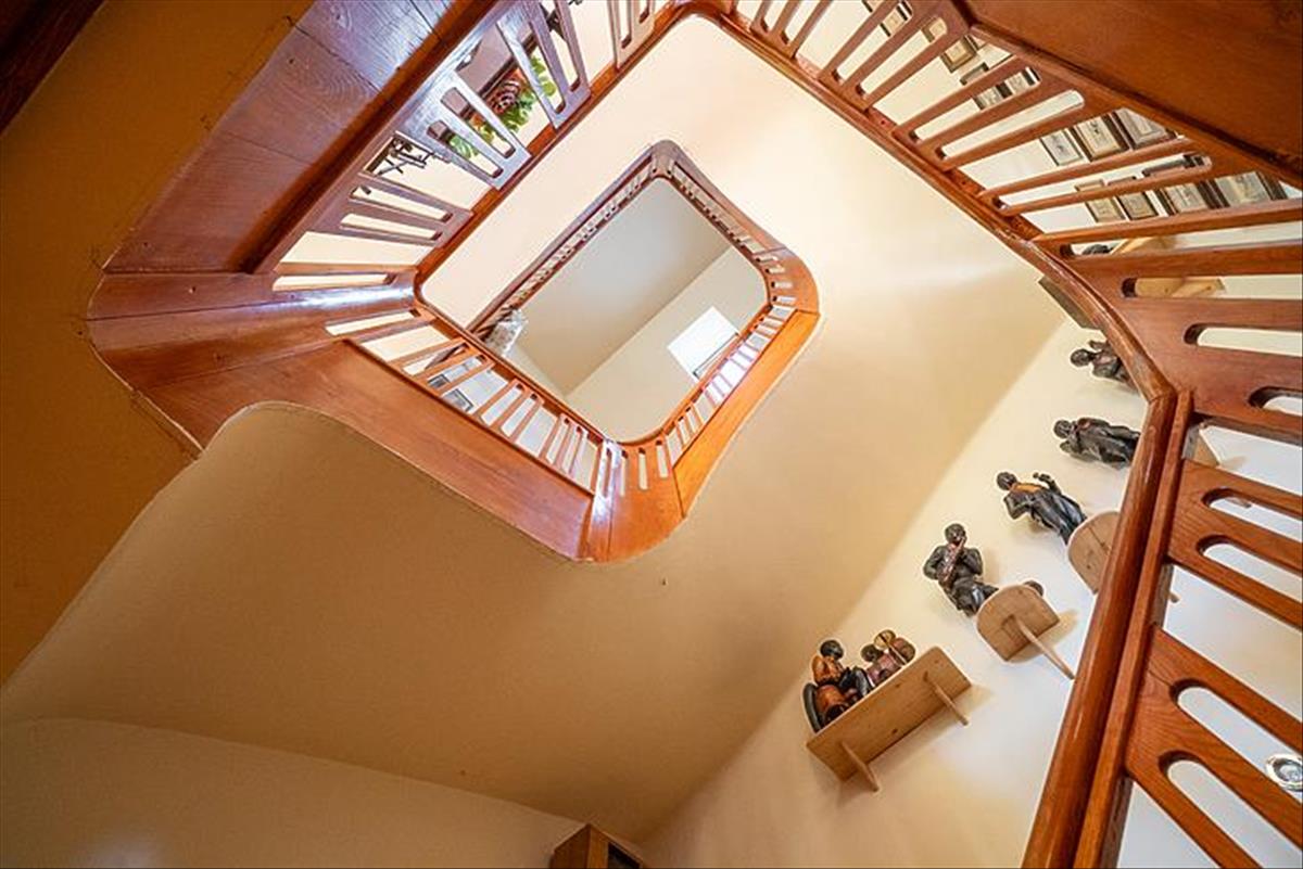A 450 m² lakóterülettel rendelkező ház három szintjét, melyet egy körtefából készült lépcsőház köti össze, összesen 4 szoba és 2 fürdő, egy gardrób, egy étkezős konyha, gépészet, mosókonyha, hatalmas közlekedő és két raktár.