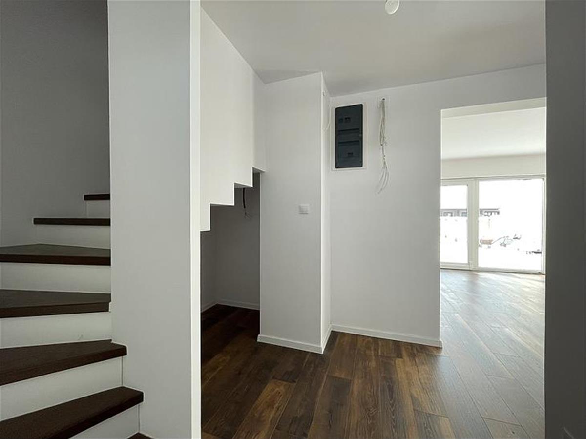 Az elülső 96 m²-es ház jelenlegi elosztása az alsó szinten egy amerikai konyhás nappaliból, egy szobából és fürdőből, a felső szinten pedig 2 és 1 félszobából, valamint egy fürdőből áll.