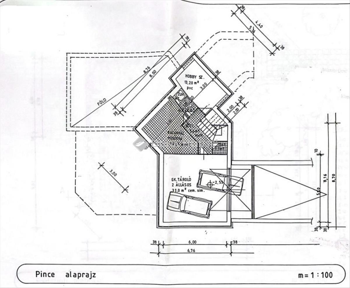 Pinceszinten két állásos garázs, szauna helyiség, kazánhelyiség új Vaillant gázkazánnal.