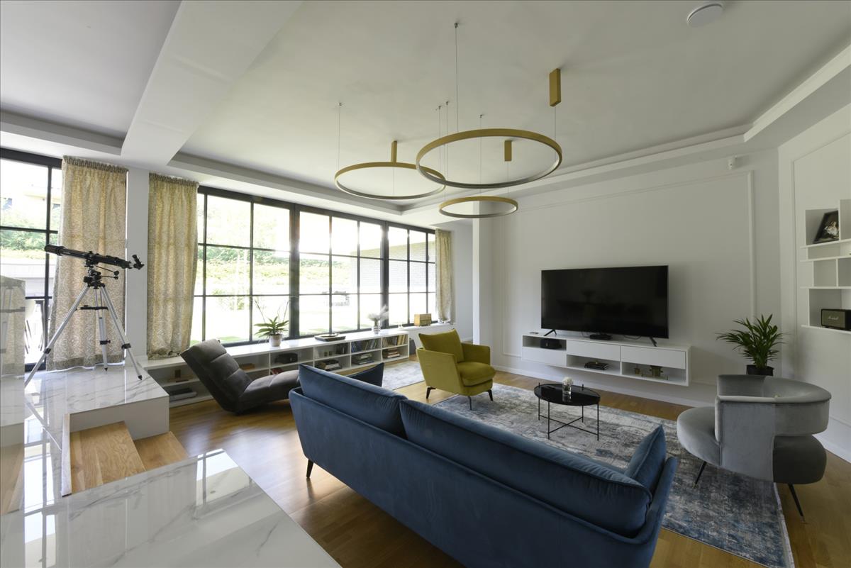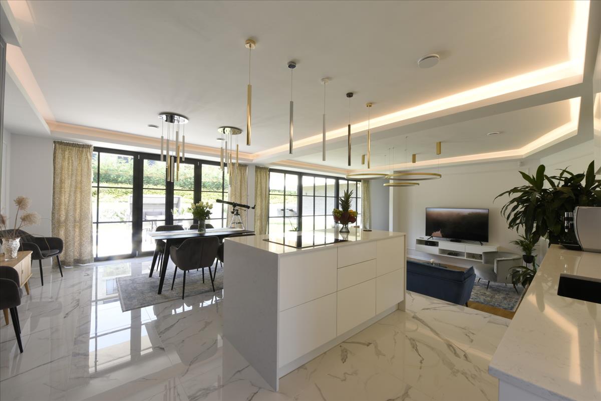 1080nm -es telken épült, 238 nettó m2 (teraszok nélkül), Nappali+5 hálószobás, duplagarázsos, 3 fürdővel rendelkező luxus ingatlan leírása: