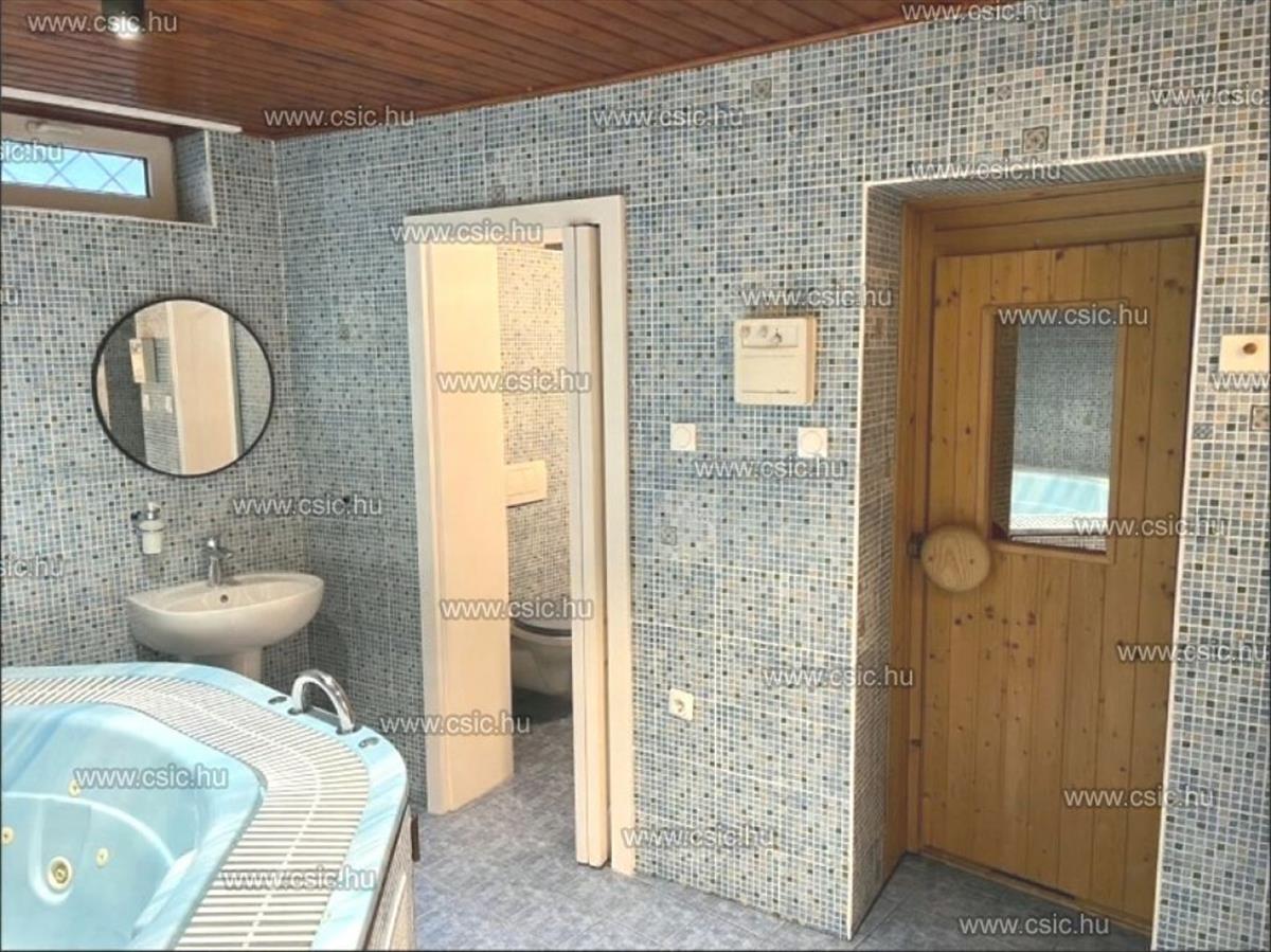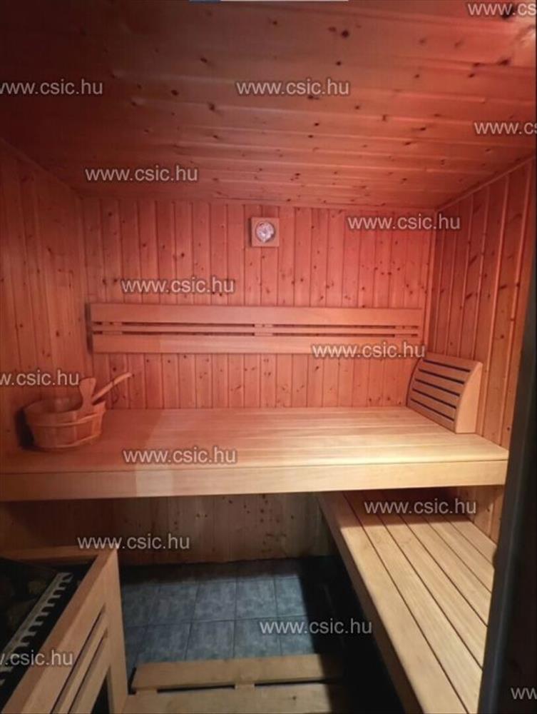 - Garázs, közvetlen bejárattal a házba, közlekedő, tároló helység, gépészeti helység és mosókonyha - szennyesledobóval, hobbi szoba - hátsó kertkapcsolati kijárattal, wellness részleg szauna, jacuzzi, zuhanyzó + WC
