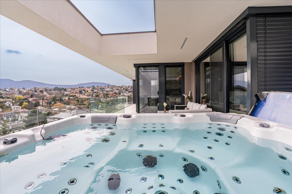 Budapest egyik legkeresettebb, zöldövezeti részén, Péterhegyen található ez a kivételes adottságokkal rendelkező, 5 éve épült luxus családi ház, amely a modern technológia, a fenntarthatóság és a kompromisszummentes kényelem tökéletes egyensúlyát nyújtja.