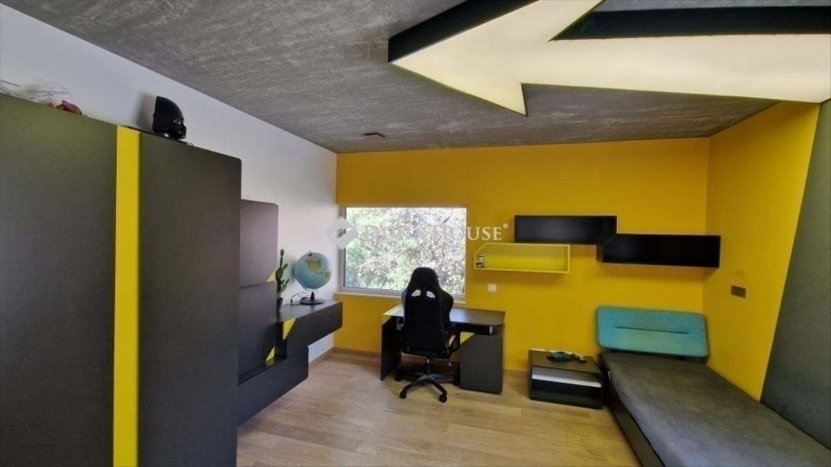 A földszinten a nappali, konyha, étkezőn túl dolgozósarok, fürdőszobás vendégháló, az emeleten további három hálószoba került kialakításra. Összesen három fürdőszoba szolgálja a családot. a master bedroom-ból egy hatalmas jacuzzis terasz és gyönyörű panoráma nyílik a környező hegyekre. Ehhez a hálószobához saját fürdőszoba és pezsgőfürdő is tartozik. a ház garázsa dupla állásos ezen kívül tárolóhelyiségek is rendelkezésre állnak.