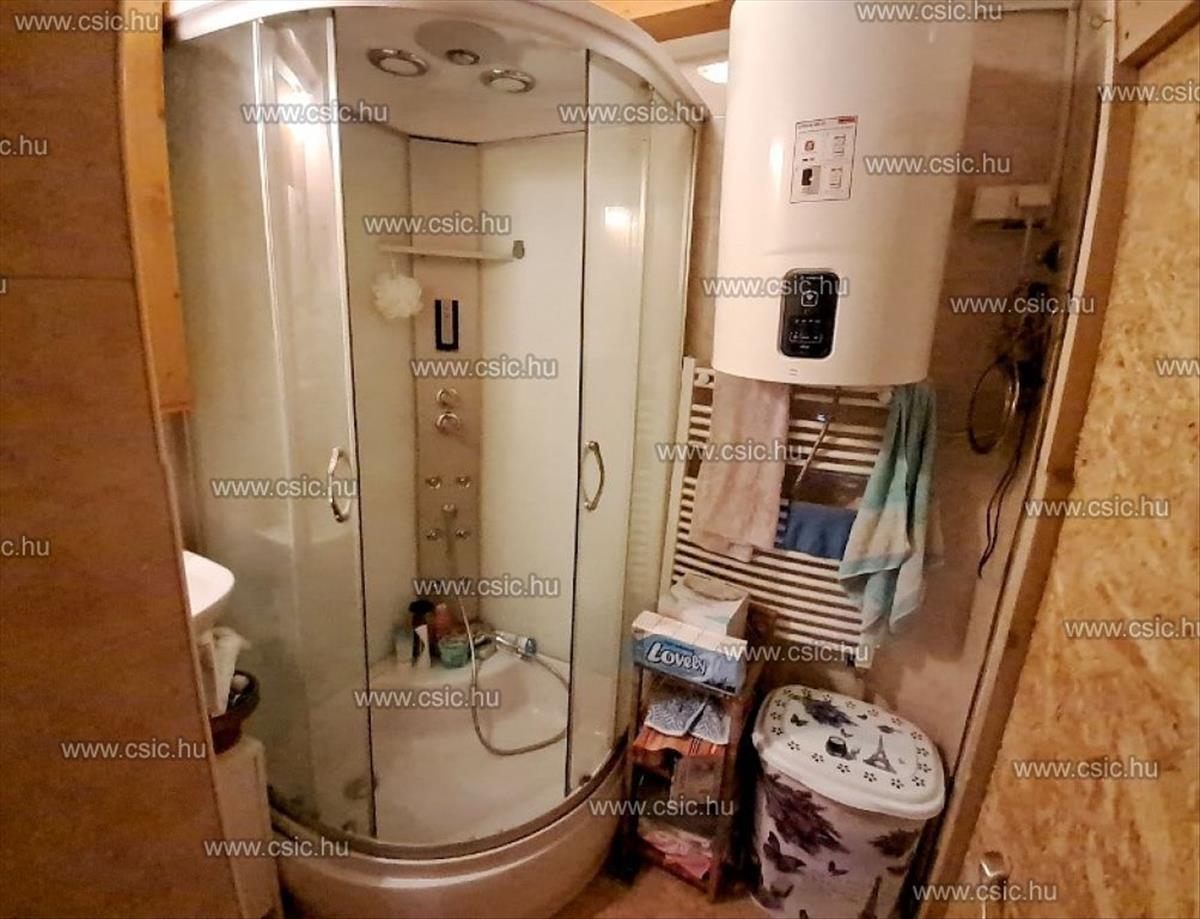 - itt található: egy étkezős konyha, kettő hálószoba, egy fürdőszoba WC-vel, és egy kamra,