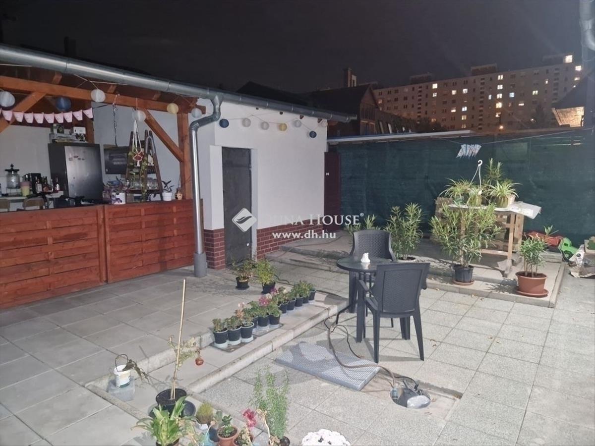 Eladó Családi ház a Kőbányán, Somfa utcánálEladó egy kétszintes, 6 szobás, 3 fürdőszobás, felújított, nagy belső udvarral rendelkező családi ház a x. kerületi Somfa utca vonzáskörzetében. Az ingatlan egy 353 nm -es telken helyezkedik el egy másik családi házzal egyetemben, így a terület osztatlan közös tulajdon, amely rendelkezik használati megosztási szerződéssel. a két ingatlan utcai bejárata ugyan közös, de minden más tekintetben elkülönül egymástól ( ezért nem ikerházak ). a korábban borozóként működő ház 2018-ban teljes felújításon ( víz, villany, csatorna is ) és belső átalakításon is átesett. a hozzá tartozó tetőteret 2003-ban építették be, így ahhoz 6 évvel ezelőtt nem kellett hozzányúlni. a ház külső, utcafronti falát megvastagították, a házat körbeszigetelték ( 8 cm ). a közös bejárattól egy fedett folyosón jutunk el az ingatlan bejáratához, ami a hátsó, belső udvarról közelíthető meg. Mivel az átépítés során kétgenerációssá alakították, ezért két bejárattal rendelkezik. a kisebbik lakrész előszobából, konyhával egybekötött nappaliból, WC-vel felszerelt fürdőből és egy hálószobából áll. a nagyobbik lakrész előszobából, étkezős konyhából, 4 hálószobából és 2 WC-vel felszerelt fürdőből áll. Ehhez a lakrészhez tartozik a feljárat az emeletre. a két lakrész jelenleg a hálószobáknál össze van nyitva, de ez igény esetén szeparálható. a gerendás fafödém 18-20 cm-es poliuretán hab szigetelést kapott, de adott esetben a kisebb lakrésznél megbontható és a tetőtéri rész kettébontásával, akár 2 különálló kétszintes lakrész is kialakítható. a házhoz tartozik egy 78 nm -es udvar is, amely jelenleg térkövezett és ki van alakítva egy fedett étkezős rész is, valamint egy fedett 12 nm -es tároló. Fűtése radiátoron keresztül gáz cirkóval történik. Az emelet klimatizált. Az utca felőli nyílászárók speciális, 3 rétegű hang-, és hőszigetelt üveggel vannak beépítve. Az ablakok redőnnyel felszereltek. a környék lokációja és adottságai révén gyalogtávolságra találunk boltot, gyógyszertárt, Lidl-t, játszótereket, óvodát, iskolát, M3-as metrómegállót, 3-as villamos megállót. a vonzáskörzetben lévő új építésű lakóparkok is mutatják, hogy a terület folyamatos fejlődésen ment keresztül az elmúlt 10 évben, ami még mindig nem ért véget. Kiváló választás lehet egy-, vagy akár kétgenerációs családoknak, de a befektetők is elgondolkozhatnak azon, hogy a kialakítás miatt a két elkülönített lakrészt akár több embernek is ki lehet adni, így az átlagnál nagyobb bevételt lehet generálni. Jöjjön el, nézze meg és tegyen ajánlatot! ! ! !