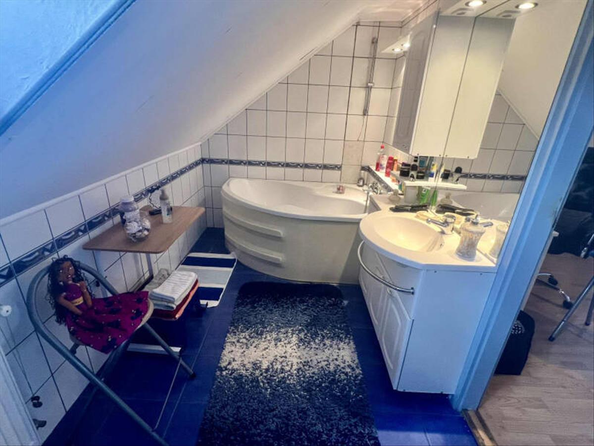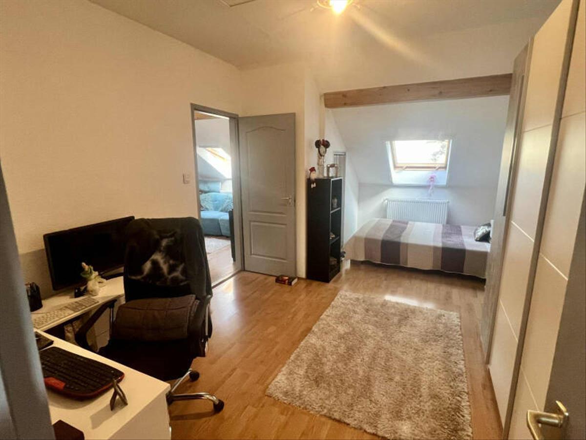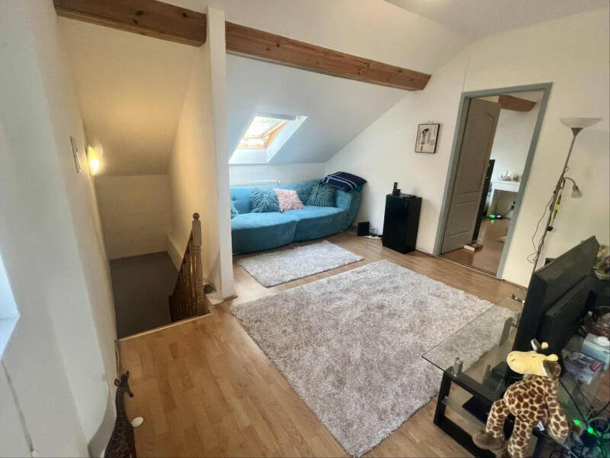 Emelet: 1 nappali innen nyílik a 2 külön nyíló szoba, szobából nyíló fürdőszoba wc-vel (sarokkáddal). (Nappali és a szoba délkeleti, fürdőszoba és a másik szoba északnyugati tájolású. )