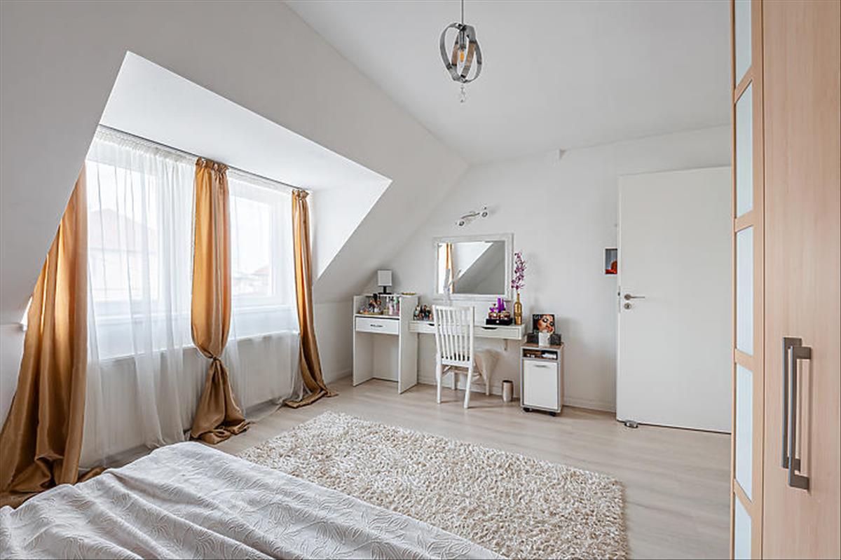 Az ingatlan elosztása kiváló, az alsó részen egy hatalmas nappali található, konyhával és étkezővel, a felső szinten pedig két szoba és egy tágas fürdőszoba lett kialakítva.