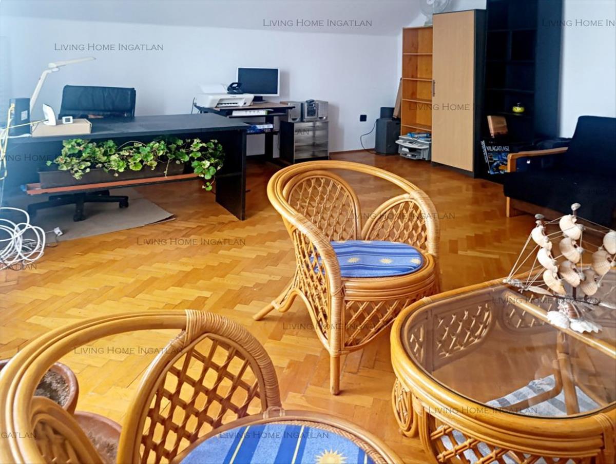 Az épület a kert hátsó részében helyezkedik el. Pince, földszint, emelet, szintenként 70 nm-es. Földszinten amerikai konyhás nappali, fürdőszoba, emeleten nappali és hálószoba. Akár bérbeadásra is kiválóan alkalmas.