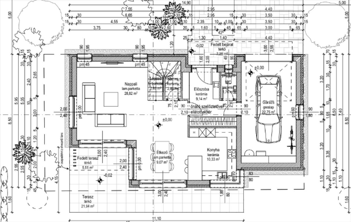 A nettó 145 m2 alapterületű otthonhoz 22, 75 m2 garázs tartozik.
