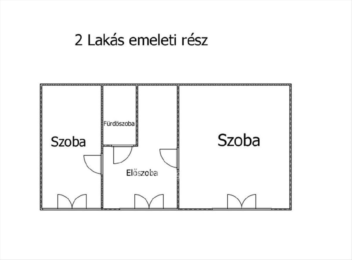 Felső szint: 2 szoba, fürdőszoba, előtér, kondenzációs kazán.