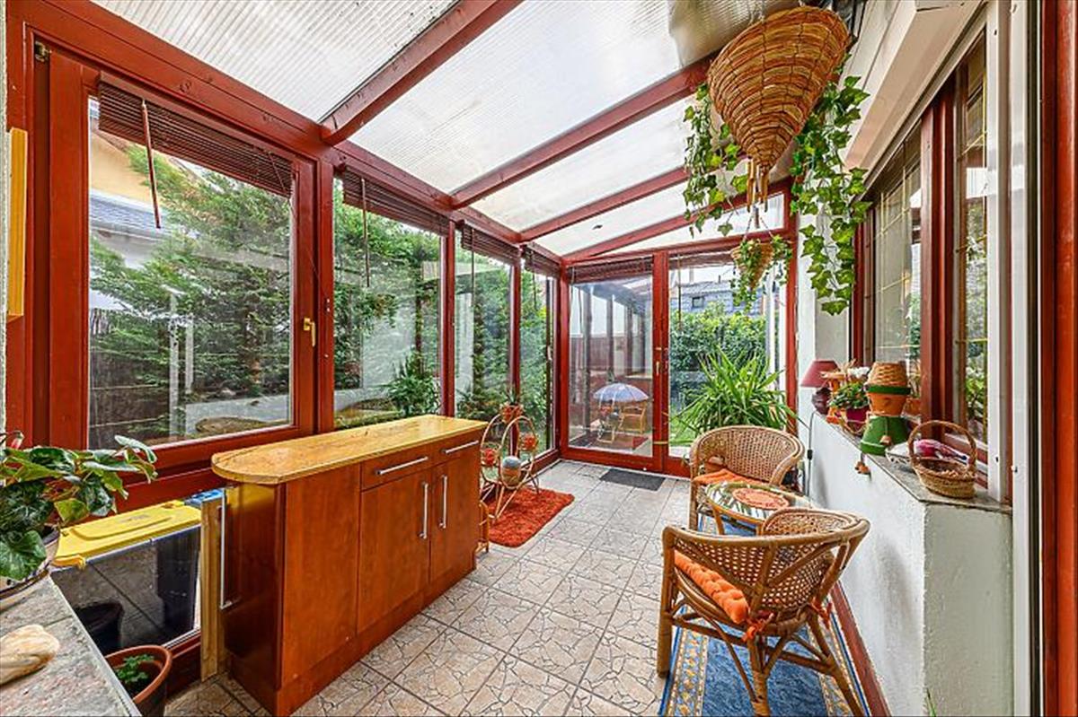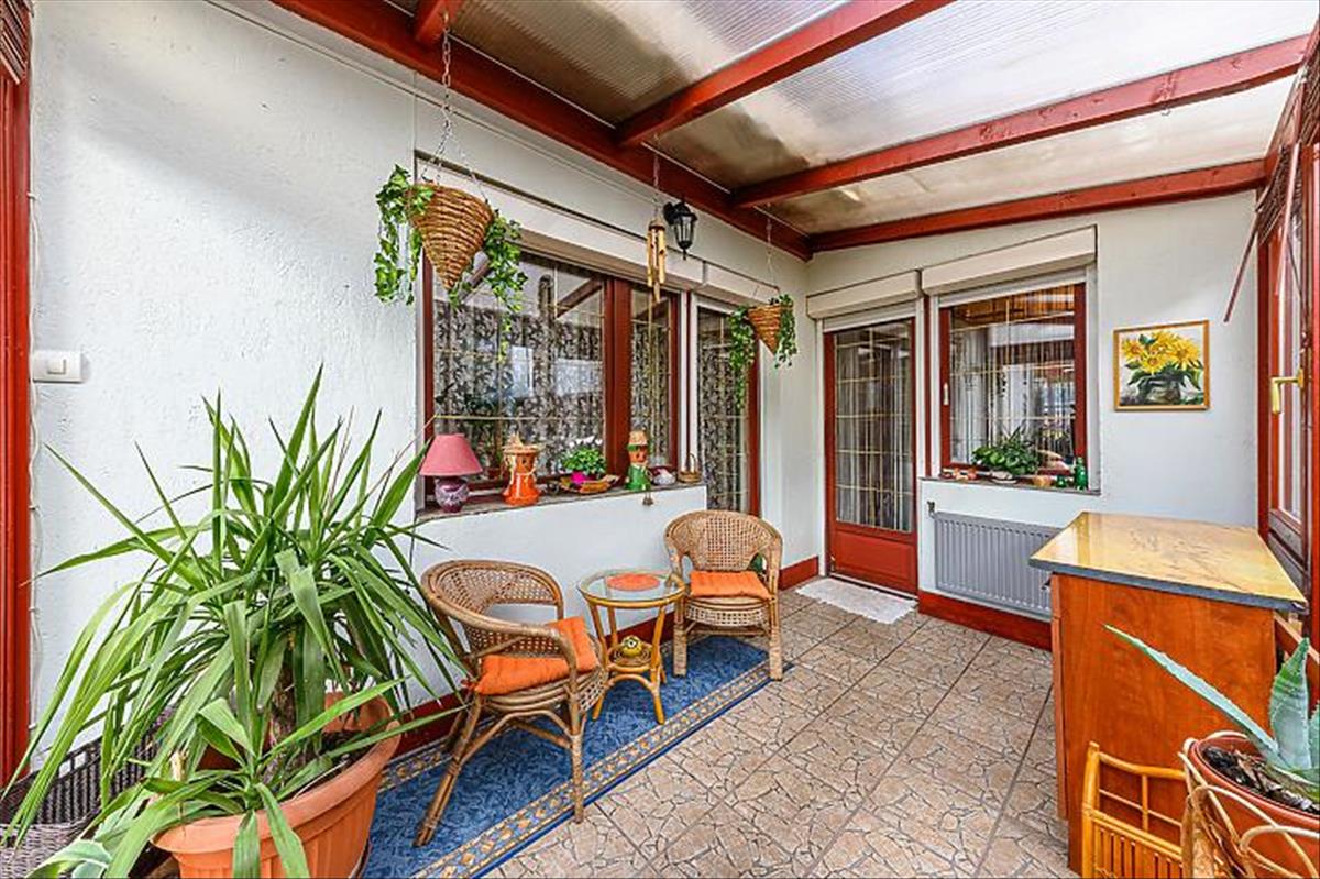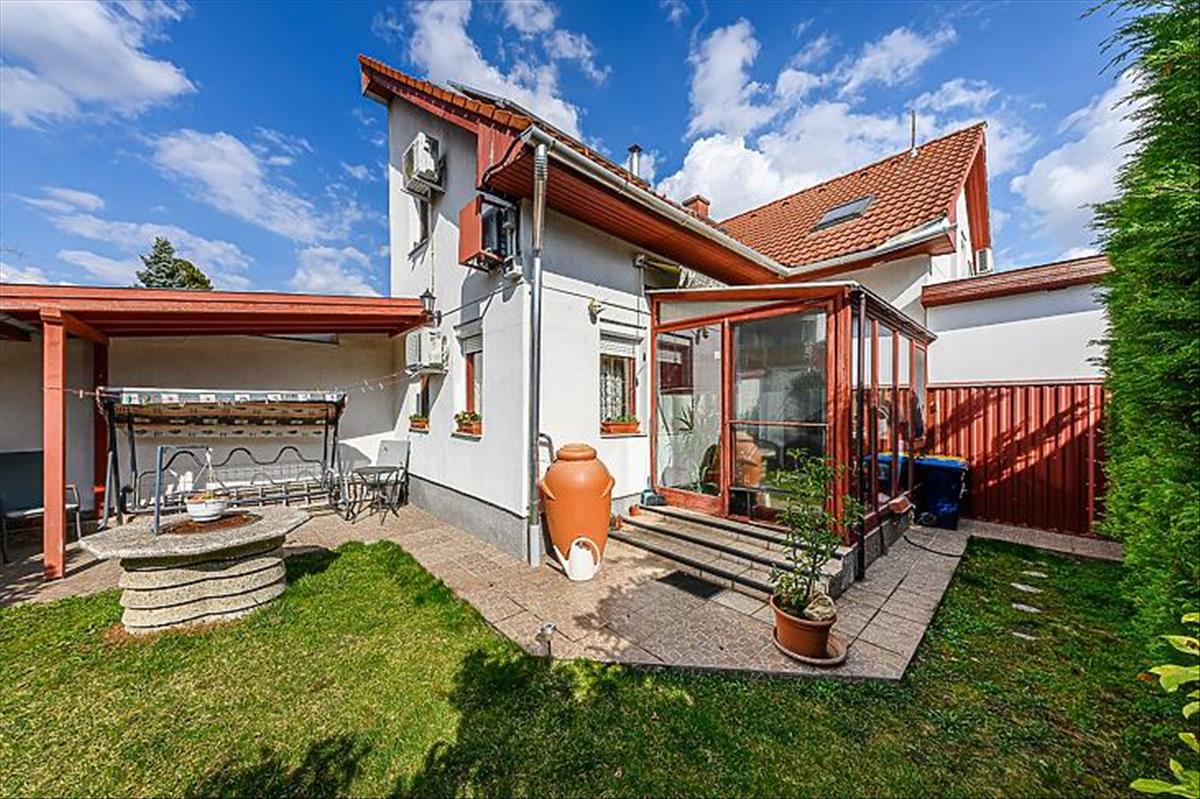 Az ingatlan saját garázzsal rendelkezik, emellett az utcán a parkolás ingyenes. a házhoz elő- és hátsó kert is tartozik, valamint egy beépített, fűthető télikert, amely egész évben kellemes, világos plusz életteret biztosít. a kert gondozott, szép állapotú, ideális pihenésre és családi programokra.