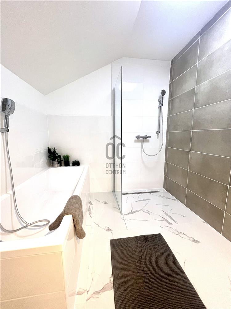 * Prémium fürdőszoba: Az alsó szinten8 m²-es a felső szinten 15 nm- es fürdőszoba elegáns, modern burkolatokkal és prémium felszereltséggel, amely wellness élményt biztosít minden nap.