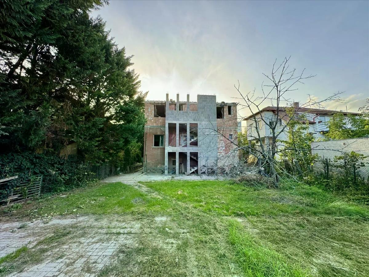 Jelenleg egy 3 szintes (félszuterén, magasföldszint, emelet), befejezetlen ingatlan van rajta, ami többgenerációs családi házként vagy társasházként lehet hasznosítani engedélyezett tervek szerint. Befejezetten alkalmas lehet lakhatási célra, irodának, rendelőnek is a jó elhelyezkedése miatt.