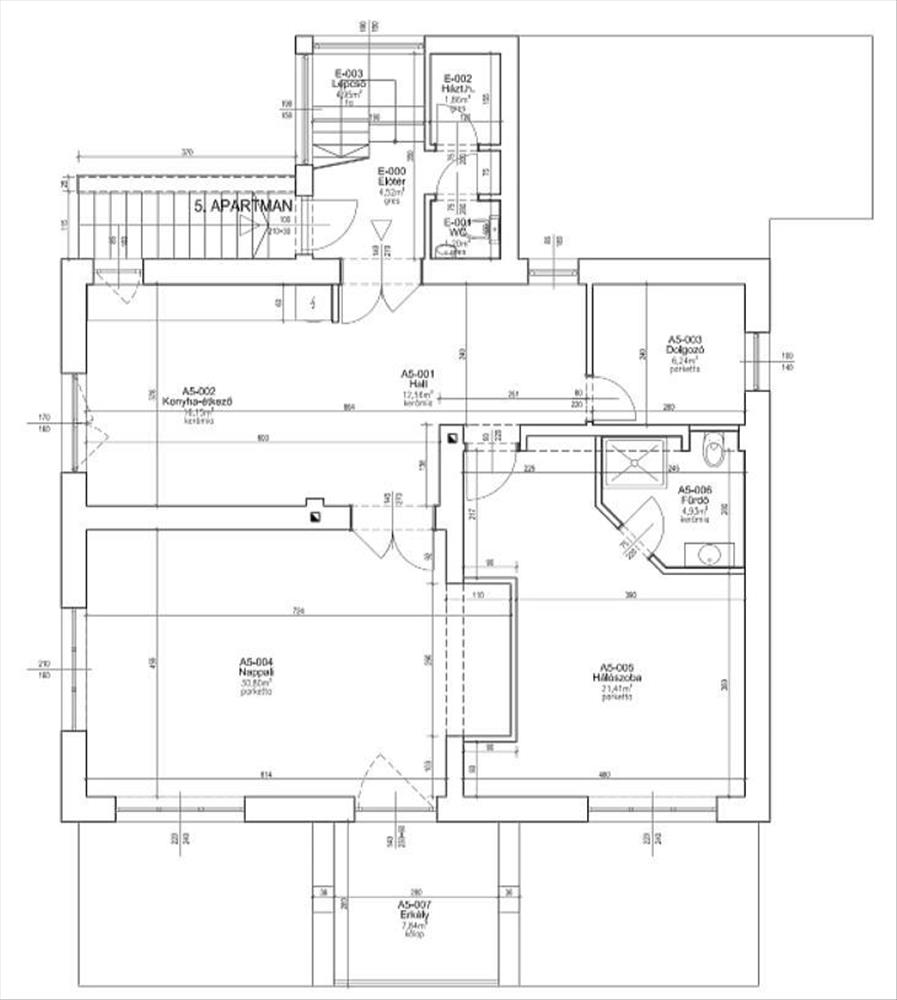 A emeleti lakószint tágas, világos terekkel fogad. a 30 nm -es nappali ideális közösségi tér lehet, melyet hálószoba, dolgozószoba és étkezős konyha egészít ki. a nappliból nyíló 8 nm -es erkélyről lenyűgöző, panorámás kilátás tárul elénk, amely valódi nyugalmat áraszt.