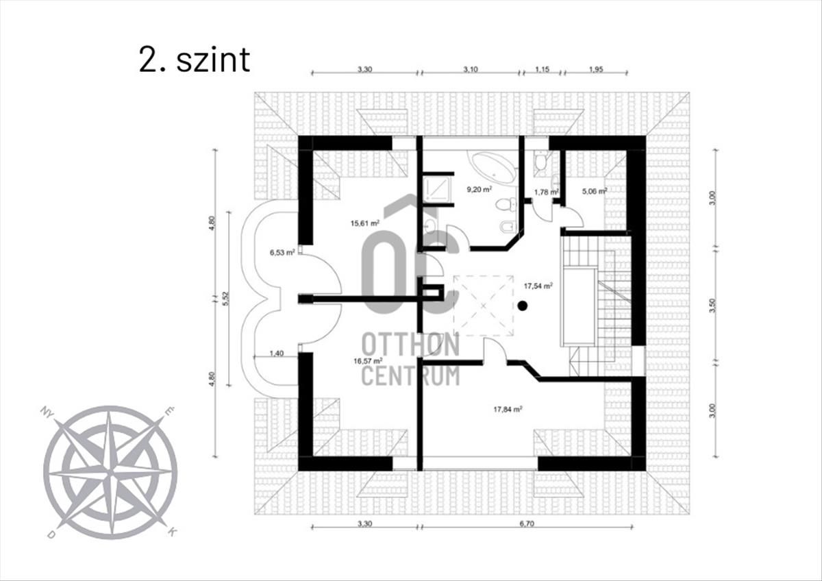 - Nettó 285 m²-es (bruttó 300 m2), 7 szobás, délnyugati tájolású, igényes tégla épület.