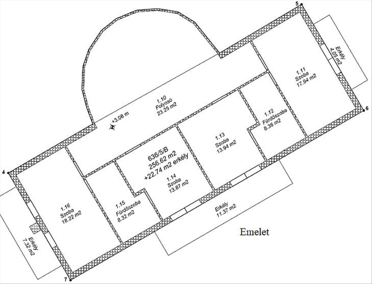 Az emeleten négy hálószoba található, mindegyik erkélykapcsolattal, valamint egy fürdőszoba.