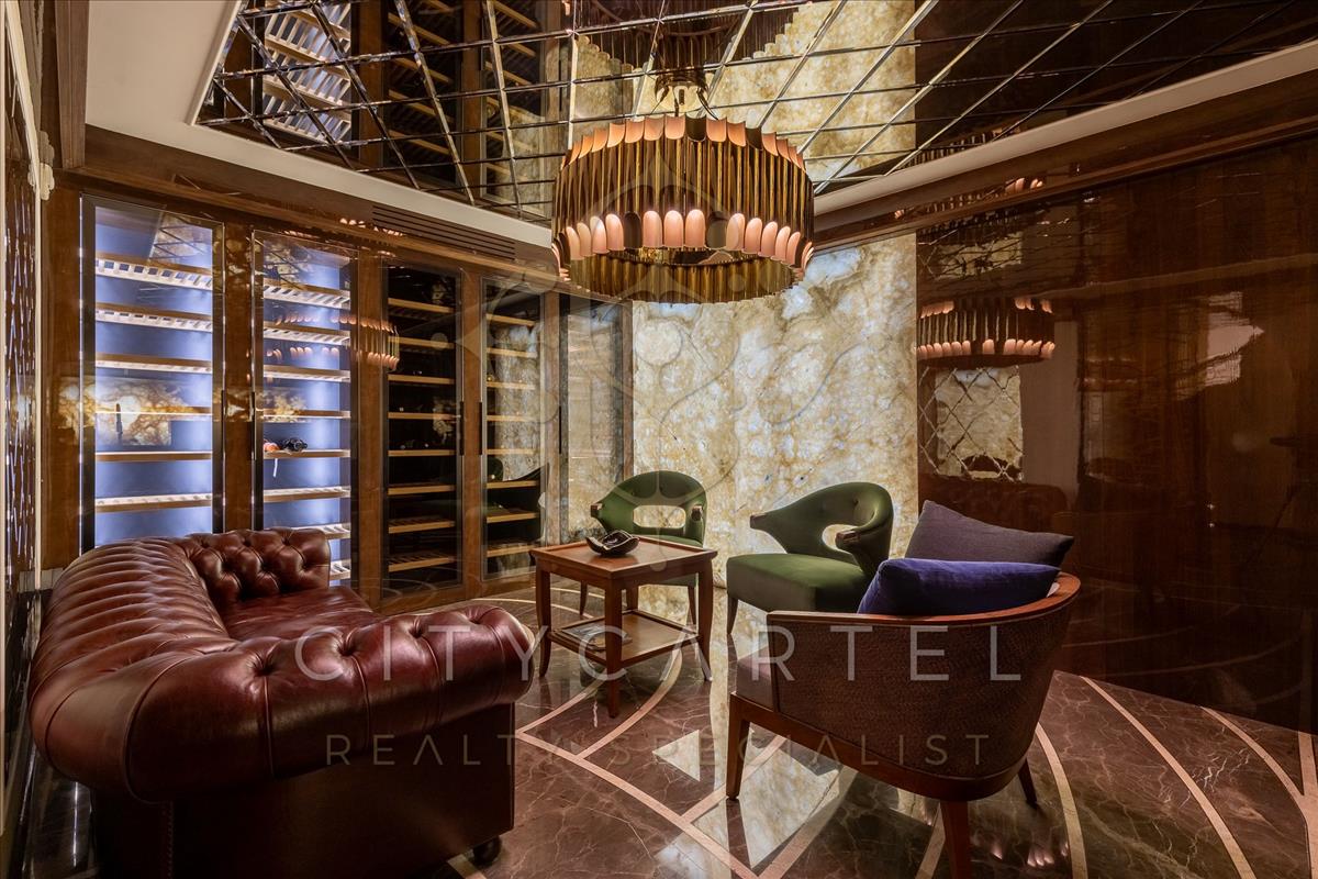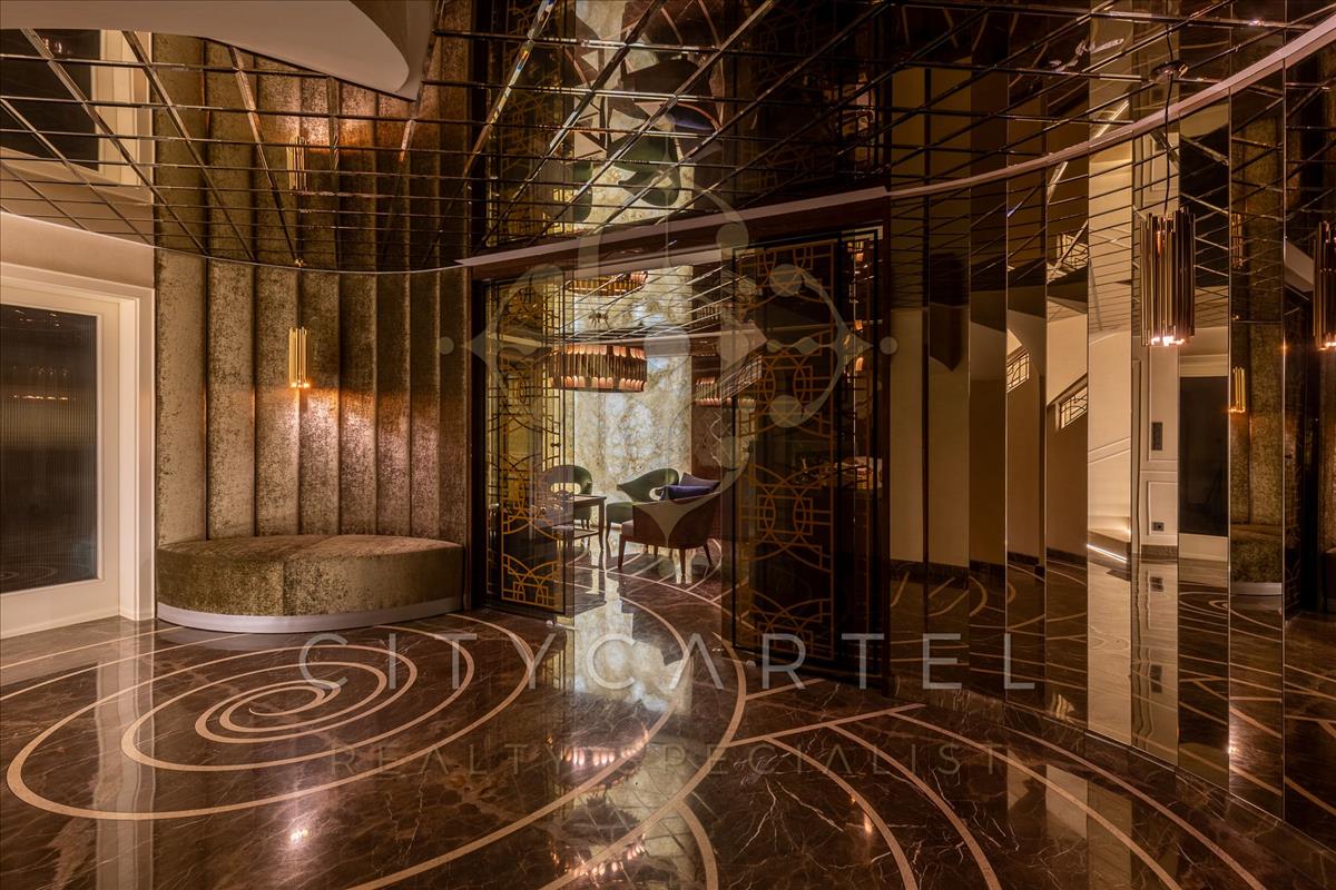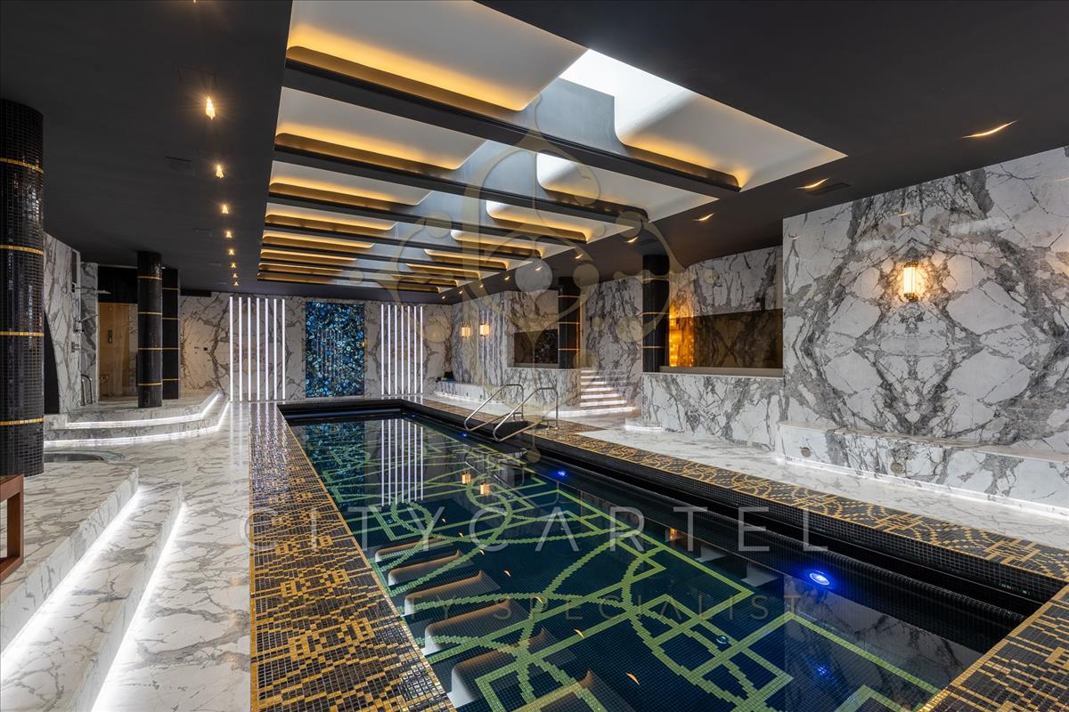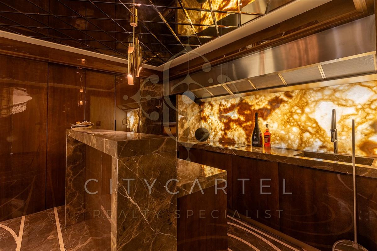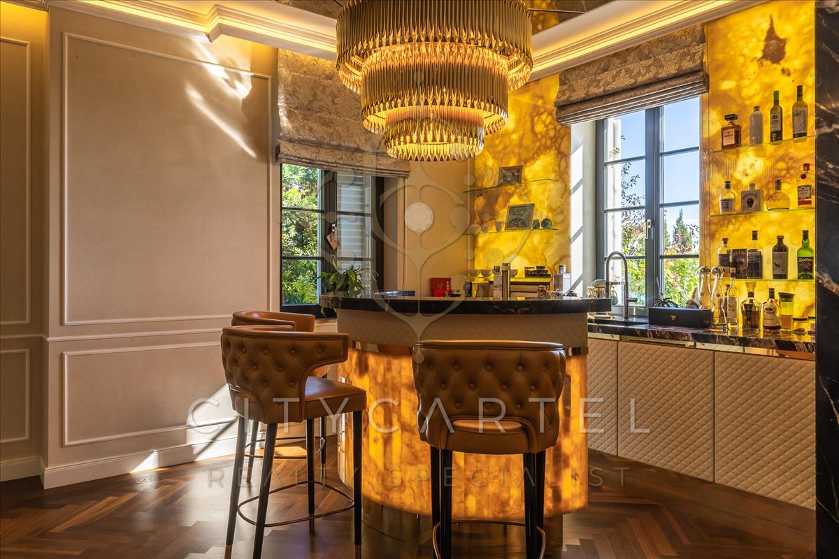 A villa minden részlete egy mestermű: a márvány, az ónix és a nemesfa harmóniája tökéletesen kiegészíti a modern technológiai megoldásokat. a reprezentatív, magas belmagasságú terekben a térérzet és a fény játéka uralkodik.