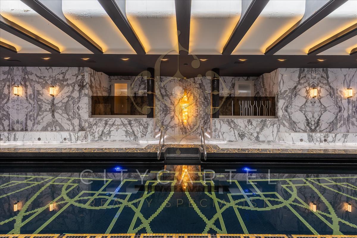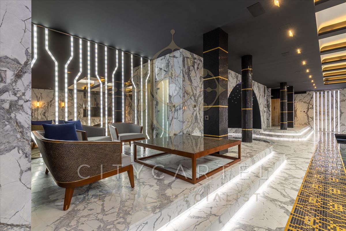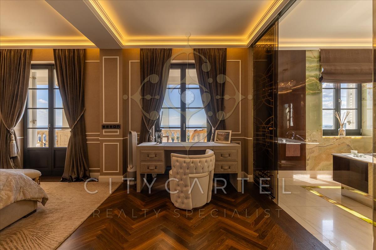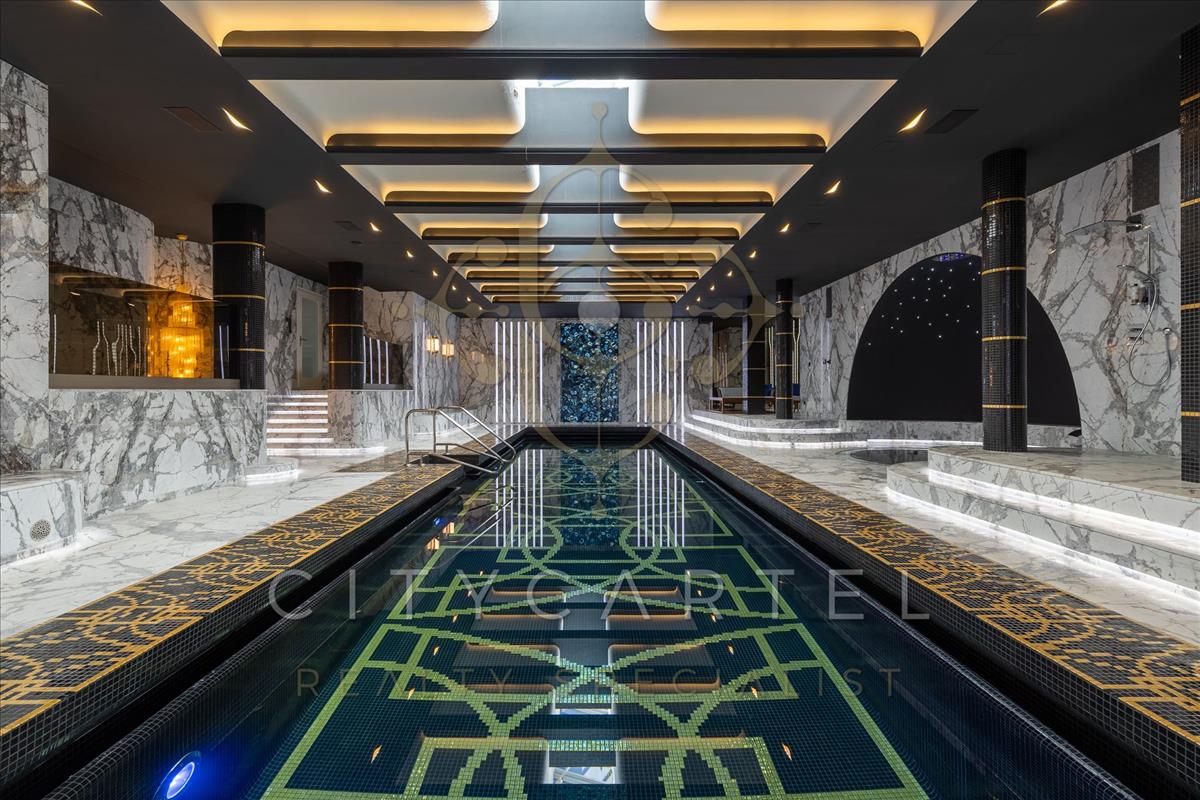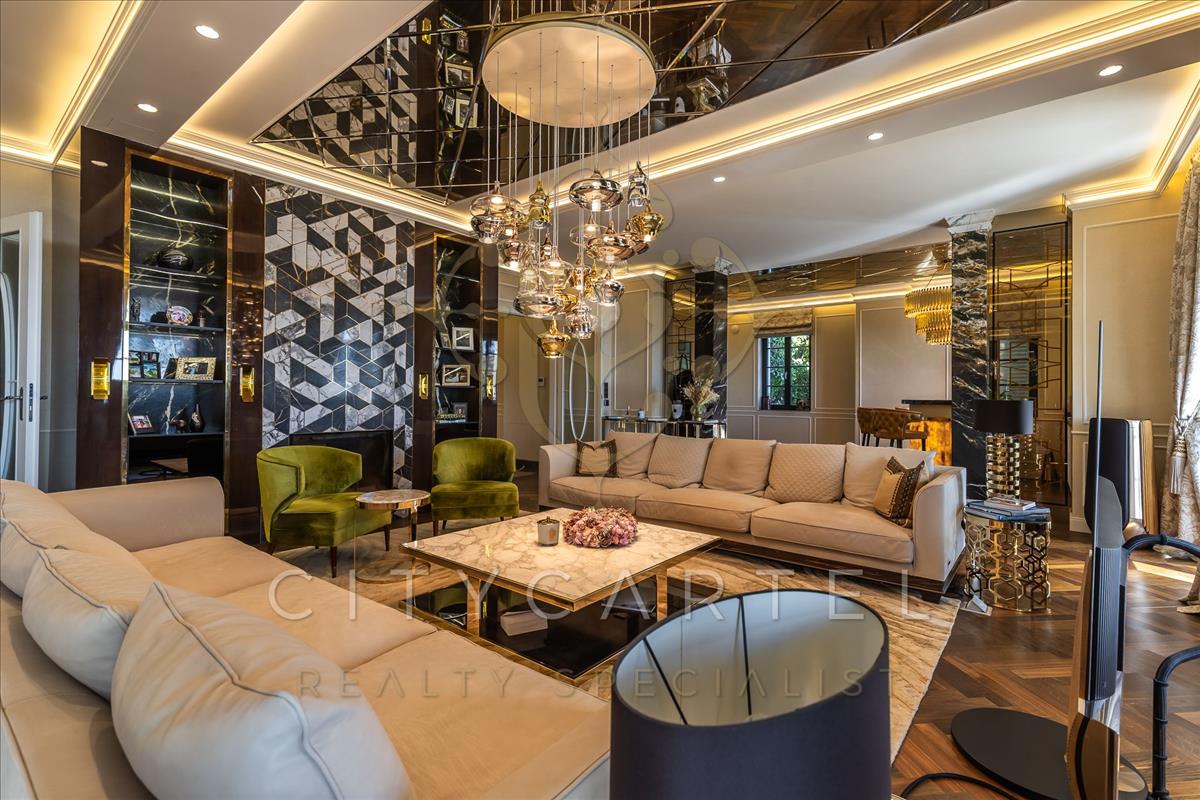 A villa minden részlete egy mestermű: a márvány, az ónix és a nemesfa harmóniája tökéletesen kiegészíti a modern technológiai megoldásokat. a reprezentatív, magas belmagasságú terekben a térérzet és a fény játéka uralkodik.
