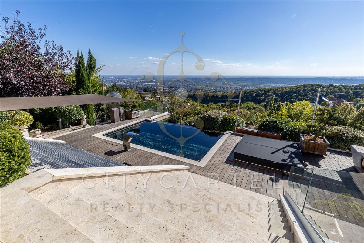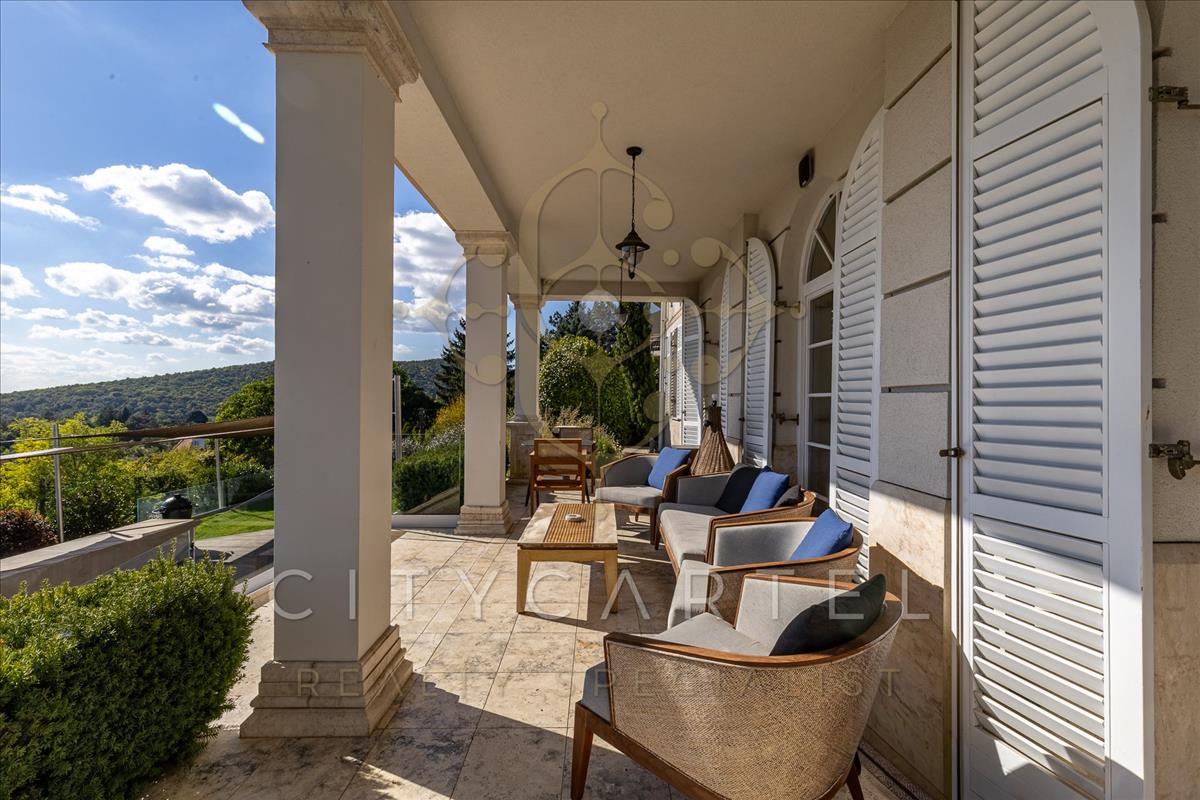 Lélegzetelállító panorámás luxusvilla a Széchenyi-hegyen – az elegancia új szintje BudánA budai dombok között, a XII. kerület egyik legelőkelőbb részén, a Széchenyi-hegy déli lejtőjén található ez a páratlan, négy szintes, közel 1400 nm-es luxusvilla, amely a klasszikus paloták méltóságát ötvözi a modern technológia kényelmével.