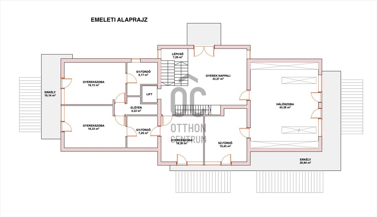 A felső szinteken világos gyerekszobák és tágas hálók sorakoznak.