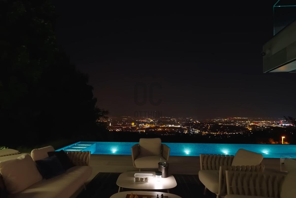 A teraszkapcsolatos, panorámás nappali és a teraszon lévő kültéri medence egyedülálló élményt nyújt használóinak minden napszakban.