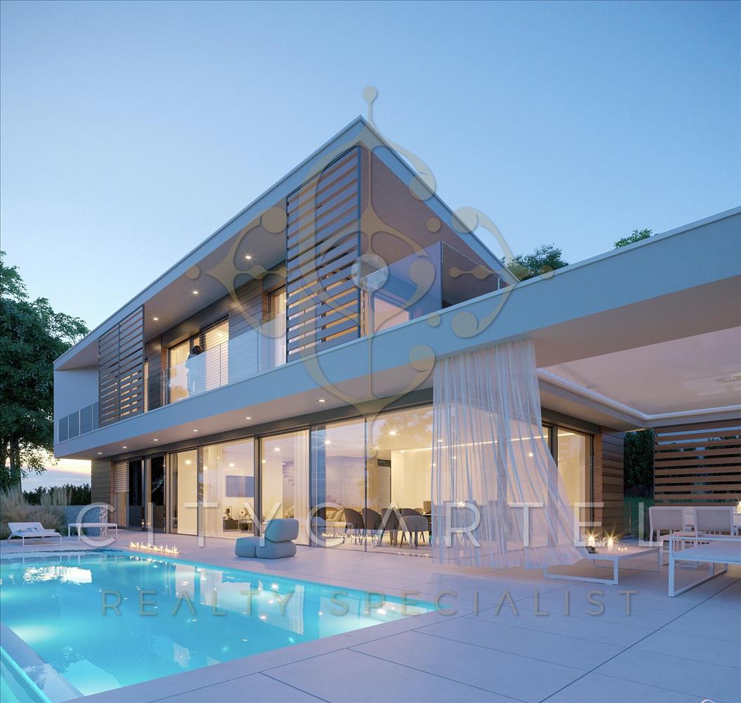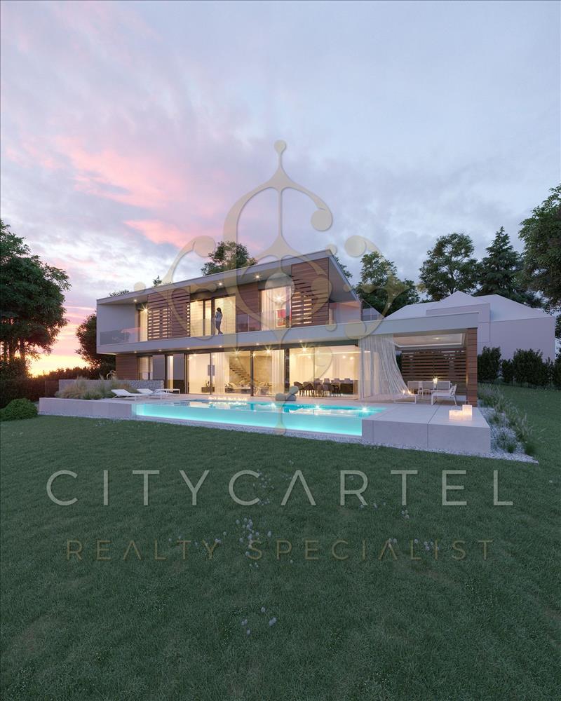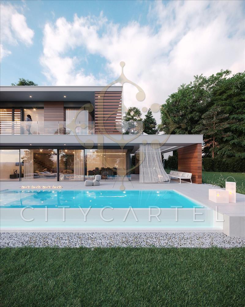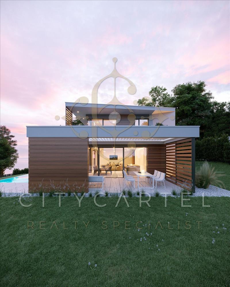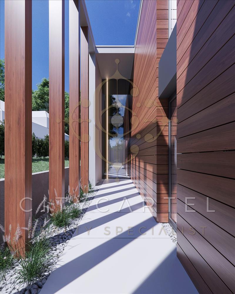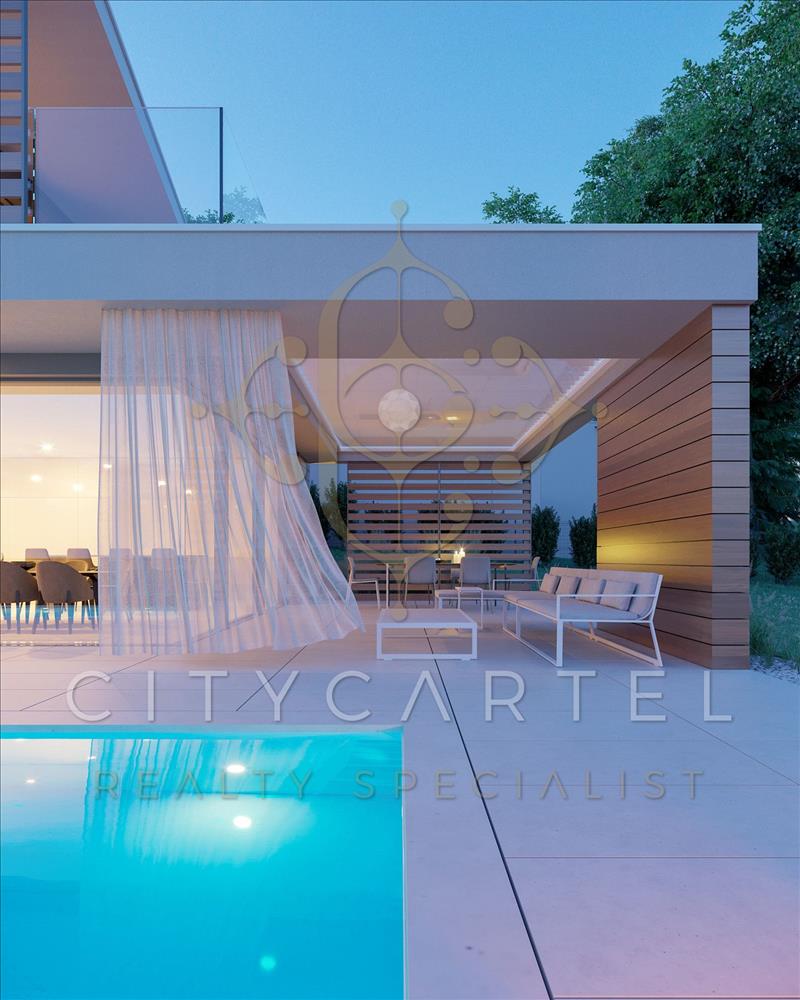 A szabályosan különálló épületként tervezett villa tökéletesen illeszkedik a természetes lejtésű telekhez. a három szintre tagolt elrendezés összesen 318, 69 nm nettó hasznos alapterületet biztosít, tágas teraszokkal és lenyűgöző tetőteraszos élménnyel kiegészítve.