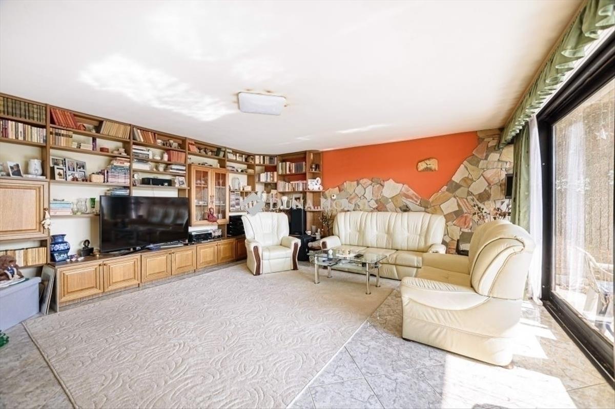 Magasúti családi otthon eladó az ördögorom park SZOMSZÉDSÁGÁBANEladásra kínálunk egy 12. kerületi magasúti sorházi 192m2-es családi otthont, 505 m2-es telken. Az épület 1983-ban épült, közművesített téglaépület Részét képezi két 24 m2-es garázs és az udvaron több autó parkolására alkalmas parkolási lehetőség. a ház 2010-ben esett át felújításon és tavaly egészségügyi festésen. Kert:- homokszűrős medence 22m2 (nem füthető), masszázs funkciókkal és led es világítással körbe- teraszos kert, termesztéshez alsó kiskert, locsolóvíz- kemence, kerti grill, kerti konyhaÉpület paraméterei:- a lécsőzetes eltolásnak köszönhetően a szuterénszint kertkapcsolattal rendelkezik, ezáltal, egy különálló 30 m2-es garzonlakás, ezen felüli fürdő helység kialakítása is megoldható. - Gáz kazán fűtés, padlófűtés, 3 db (Wifi) klíma, illeteve egy hangulatos kandalló biztosítja a meleget. - Nappali + konyha + étkező és 3 szoba (melyek közül kettő jelenleg egybe van nyitva)- 2 fürdő (kádas és zuhanyzós) + 3 wc- konyhából nyíló kamra- 4 db 10m2-es terasz tartozik hozzá, melyekről csodaás panoráma tárul elénk. További kérdéseikkel keressenek bizalommal.