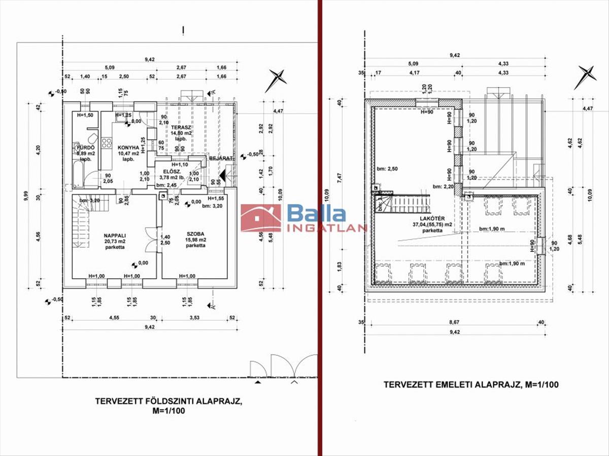 Földszint (nettó 54 nm) + fedett terasz (15 nm):