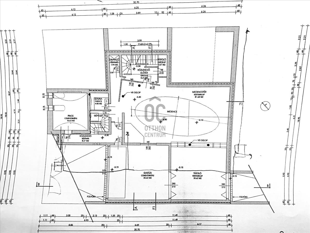 -A szuterén szint alapterülete191m2, itt található a medencetér, a szauna, nagy méretű tárolók, és a két férőhelyes garázs beálló