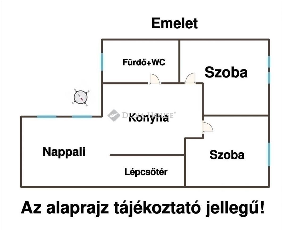 A ház belső kialakítása átgondolt és praktikus. a tágas nappali mellett négy külön nyíló szoba, két konyha és két fürdőszoba áll rendelkezésre, így az ingatlan könnyedén kétgenerációs otthonná alakítható. a lépcső alatt praktikus tároló kapott helyet, a padlás pedig további bővítési vagy pakolási lehetőséget kínál.