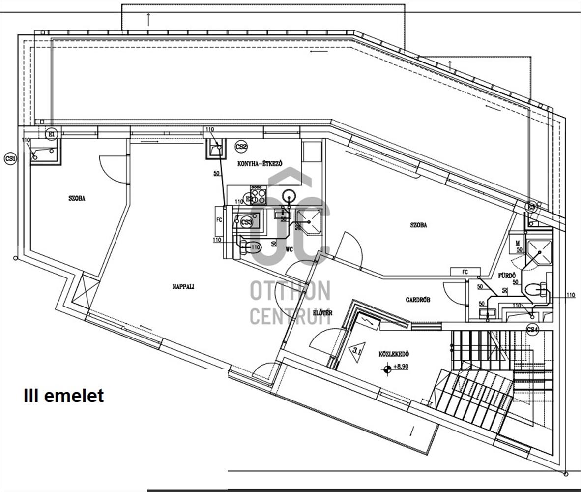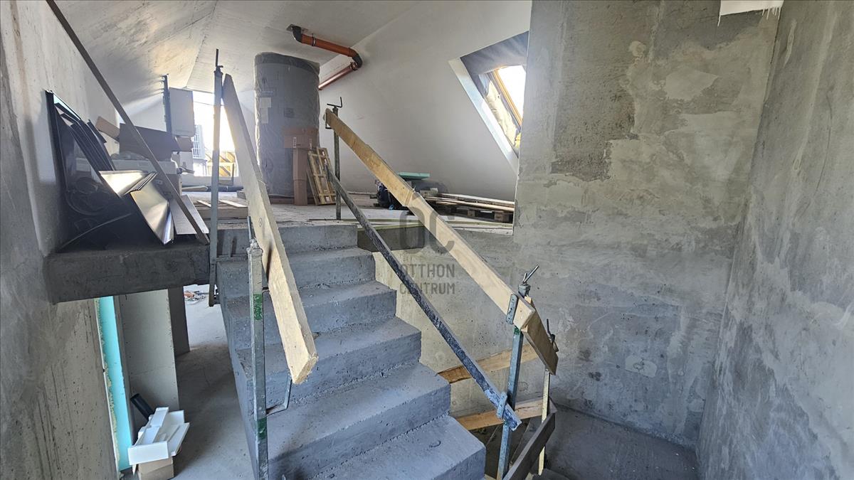 Penthouse lakás: 77, 2 m² + 39 m² terasz + 4, 8 m² erkély, 3 hálószobával és hatalmas keleti tájolású terasszal.