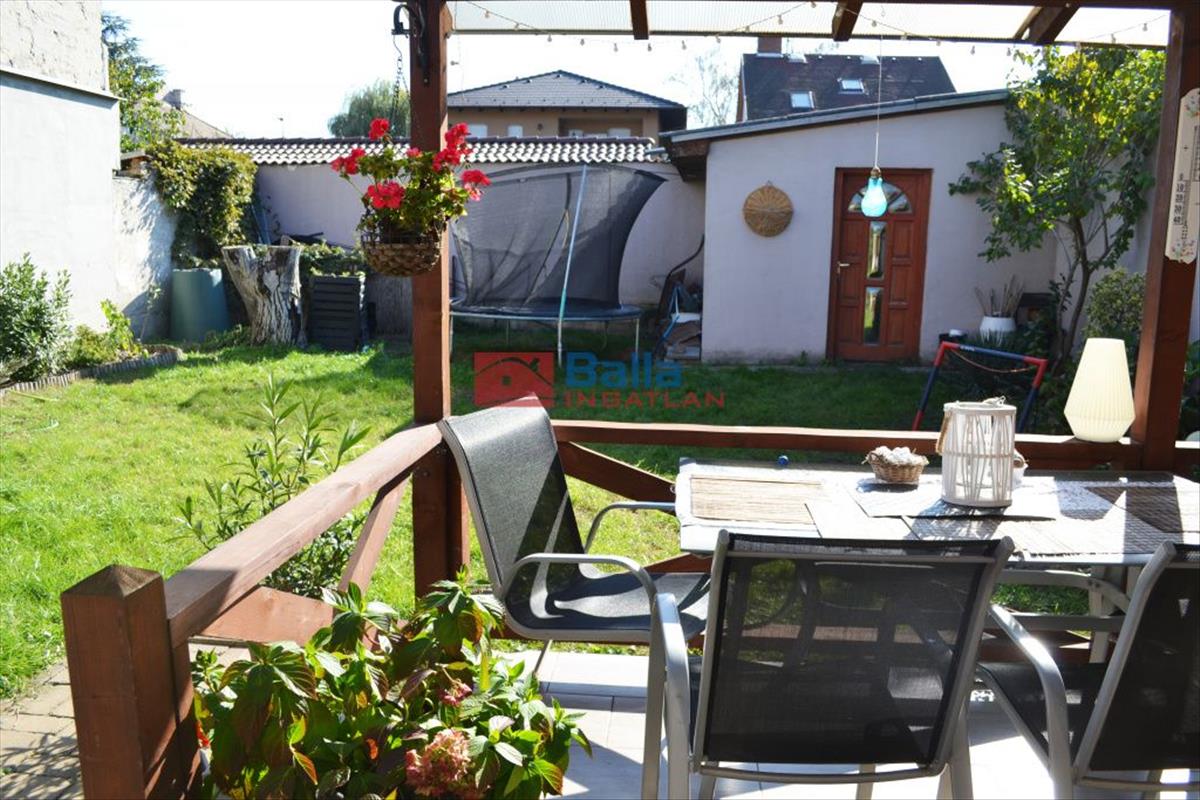 Az intim, hátsó kertben a házhoz tartozik egy 15 nm-es tároló és udvari kocsibeálló.