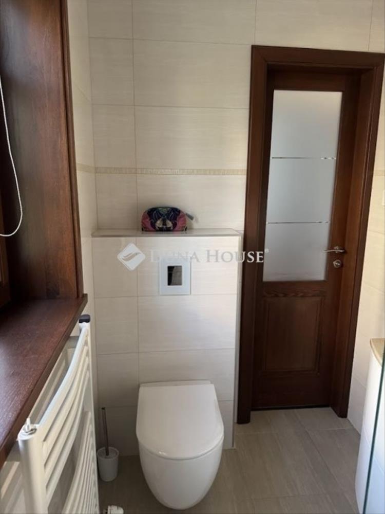 A szuterénban vízlágyító gépészet került telepítésre. a konyhabútor toldásmentes tölgyfából készült, beépített Siemens és Bosch gépekkel, borhűtővel. 2 Hálószobában szintén tölgyfa frontos beépített szekrénysorok vannak, a nappaliban beépített bútor a tv-nek, hangrendszernek, az előszobában is fa frontos beépített bútor a kabátoknak, cipőknek. a kamrában polcrendszer került kialakításra.