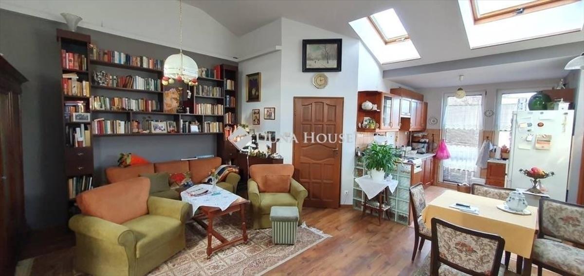 A lakás a felső szinten lett kialakítva, ez kb. 85m2 területű, teljesen felújított állapotban van, nagy, tágas terek, valóban rengeteg fény jellemzi (ez köszönhető a belső, nyitott tetőtérben elhelyezett ablakoknak, és a több irányból érkező napfénynek), a nappali a konyhával egy légtérben van, kamra, fürdőszoba WC-vel és bidével, két szeparált hálószoba, tágas erkély a hátsó, nyugodt kert irányában.