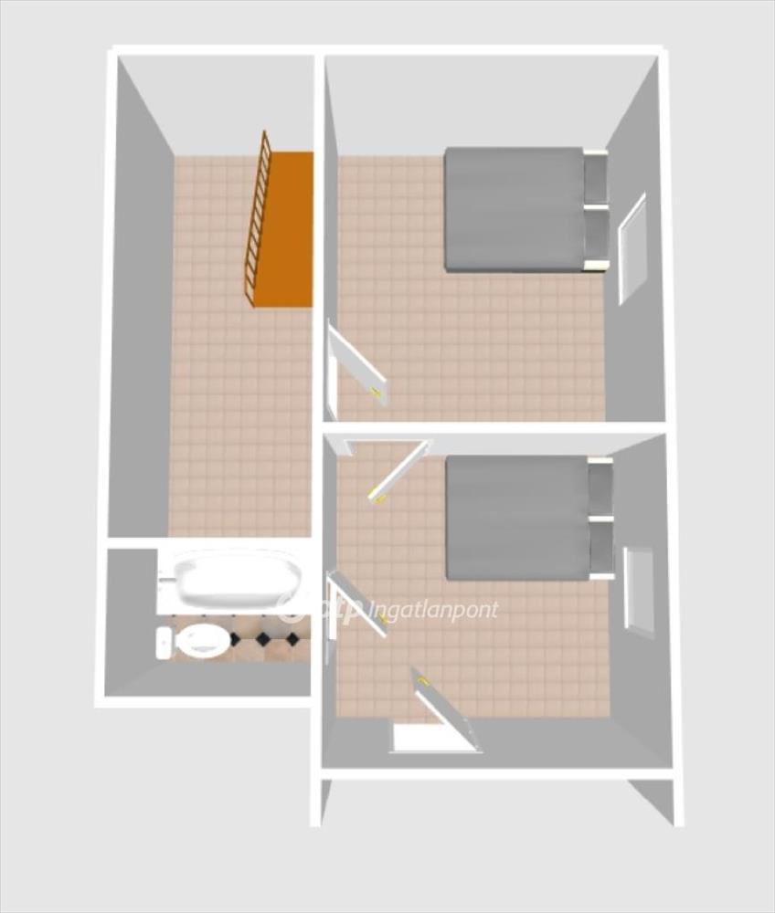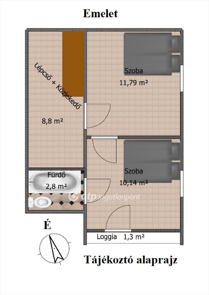 A földszinten amerikai konyhás nappalivá alakítható konyha+étkező, fürdőszoba és wc. Az emeleten tágas hálószoba.