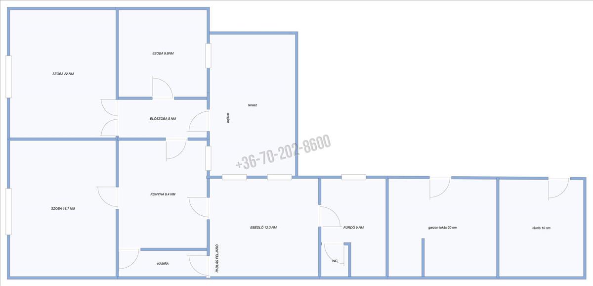 3 külön nyíló szoba, jól szeparált életterek